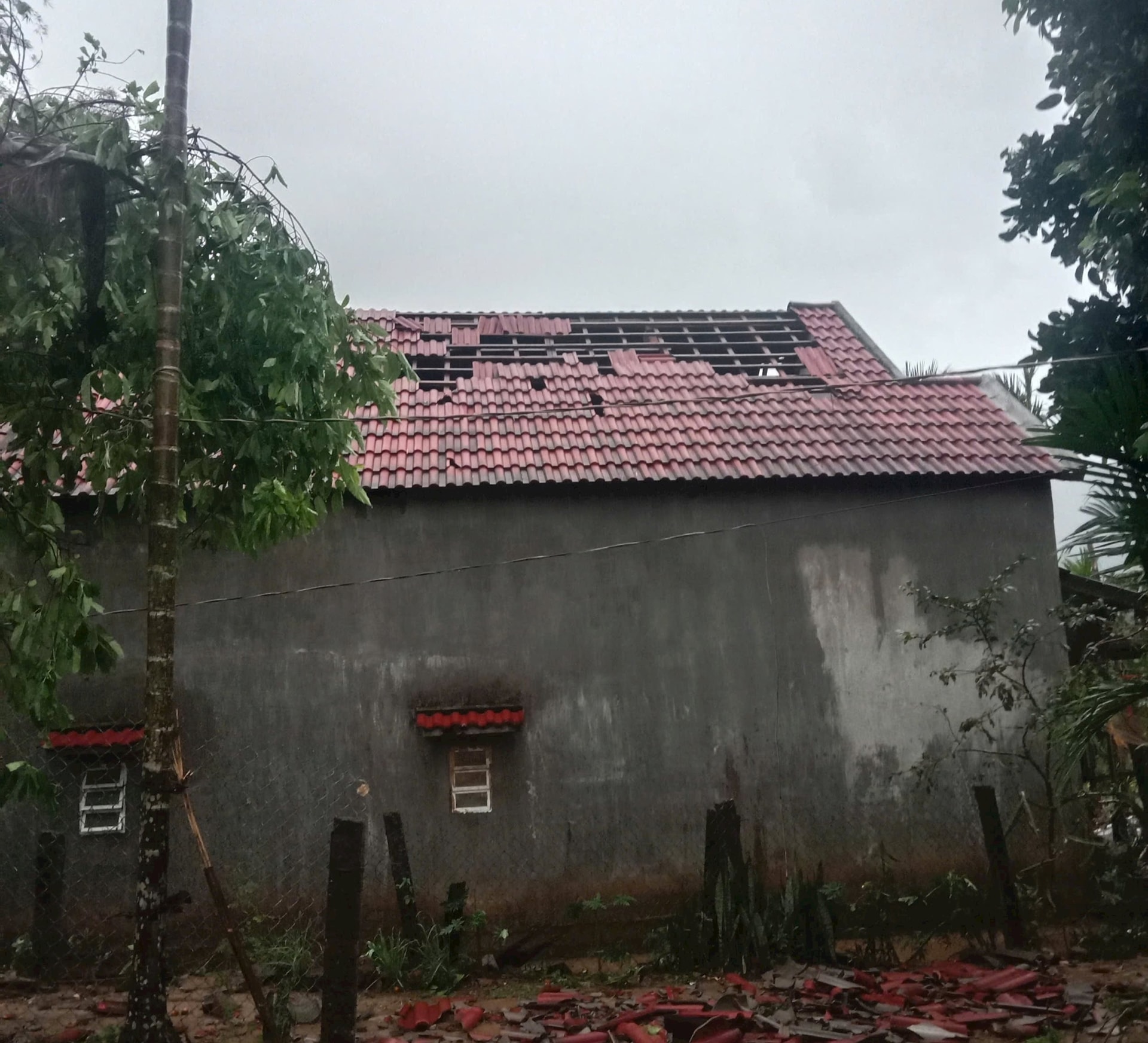 Nhiều căn nhà ở xã Ba Vì bị thiệt hại do lốc xoáy.