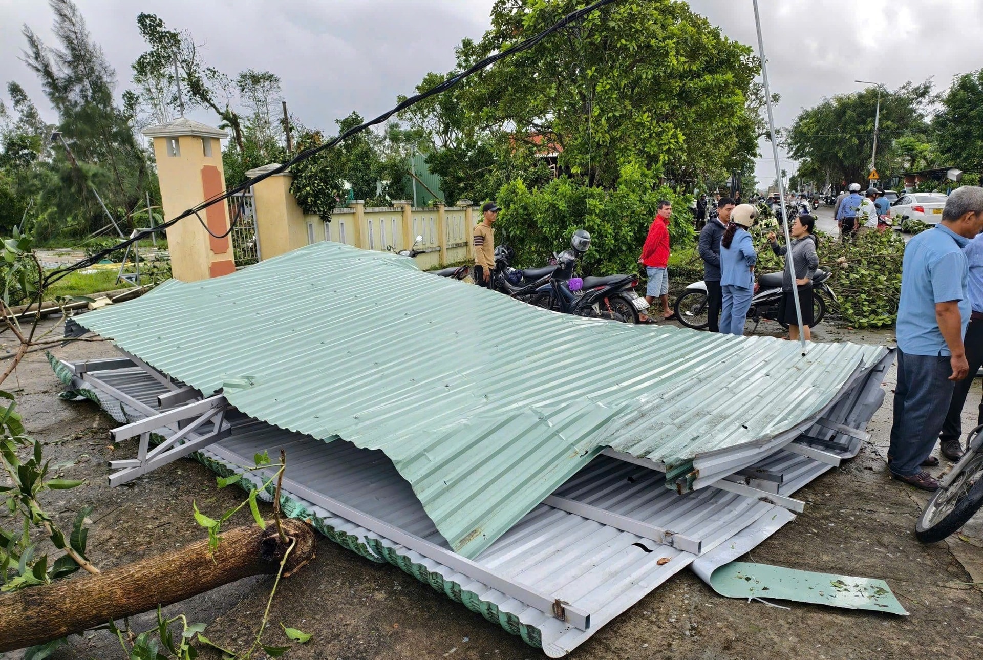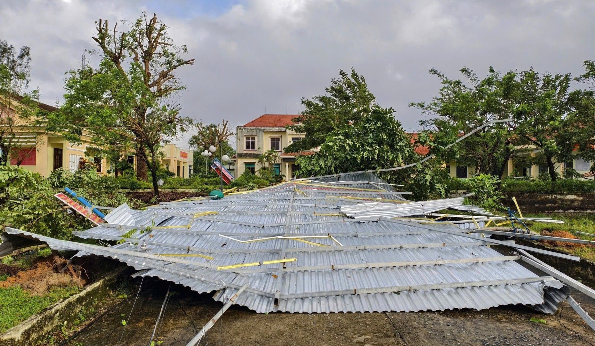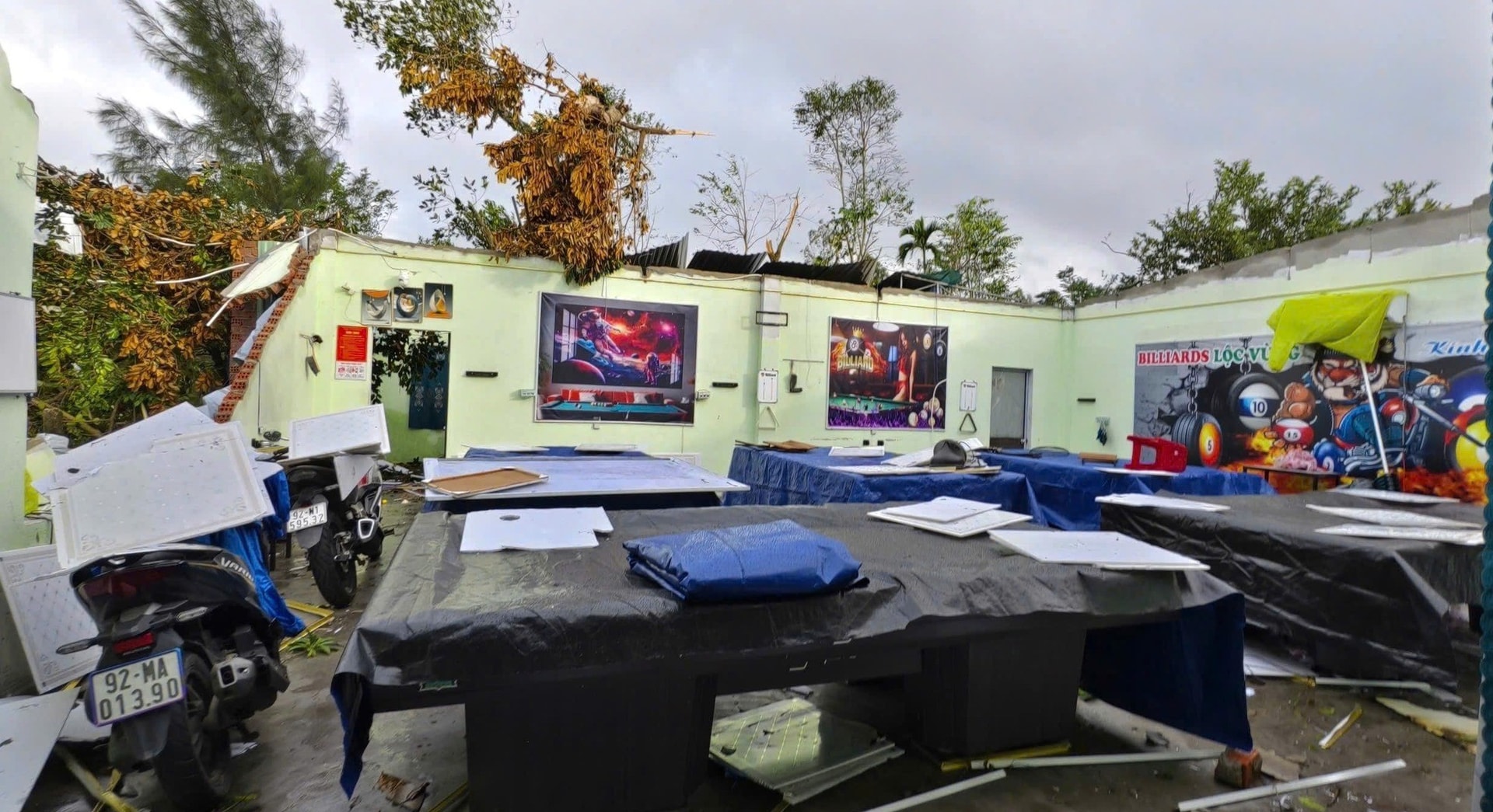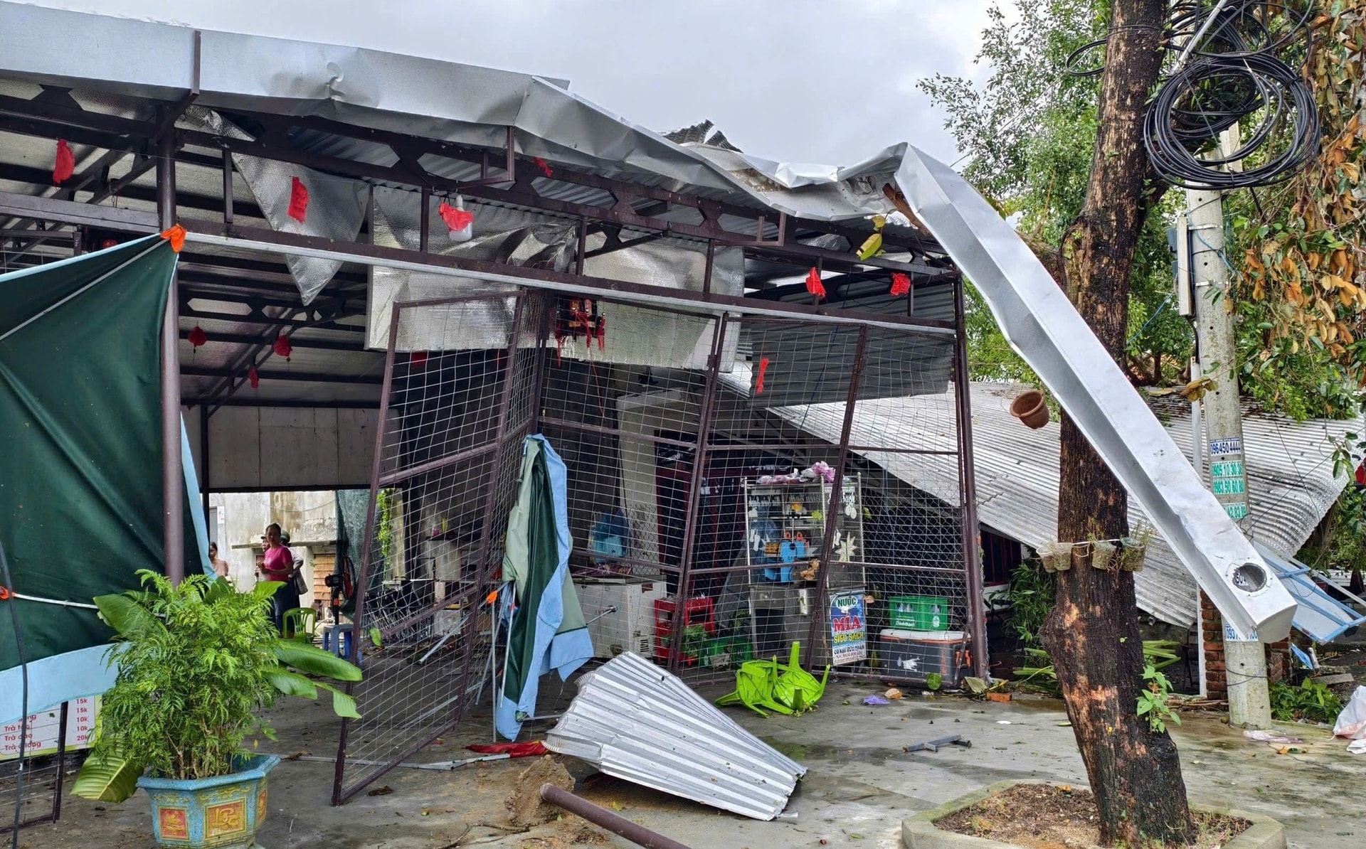 Một cơ sở kinh doanh trên địa bàn bị tốc mái hoàn toàn sau trận lốc xoáy. Ảnh: Nhóm TK92