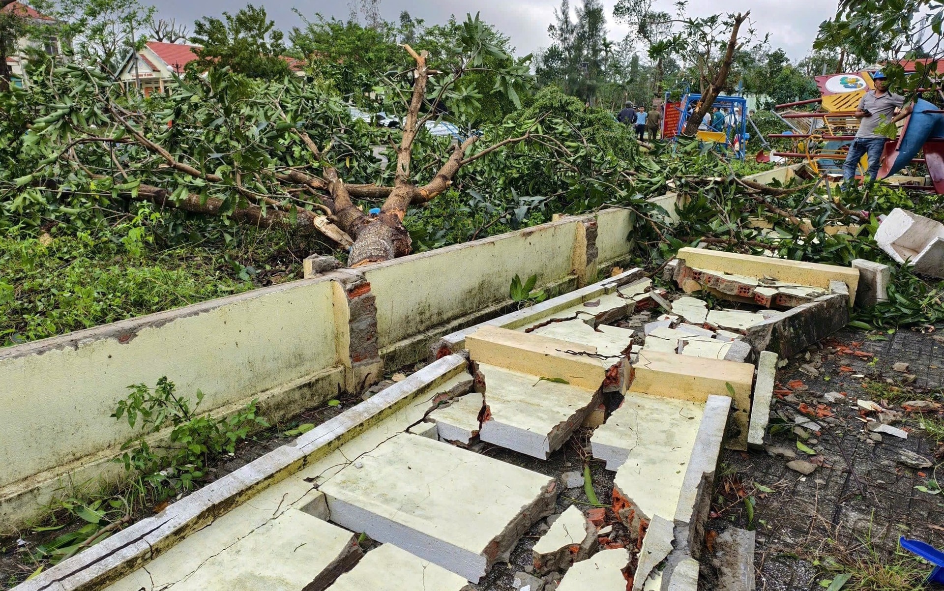 Đây là trận lốc xoáy mạnh, làm đổ cả mảng tường dài. Ảnh: Nhóm TK92