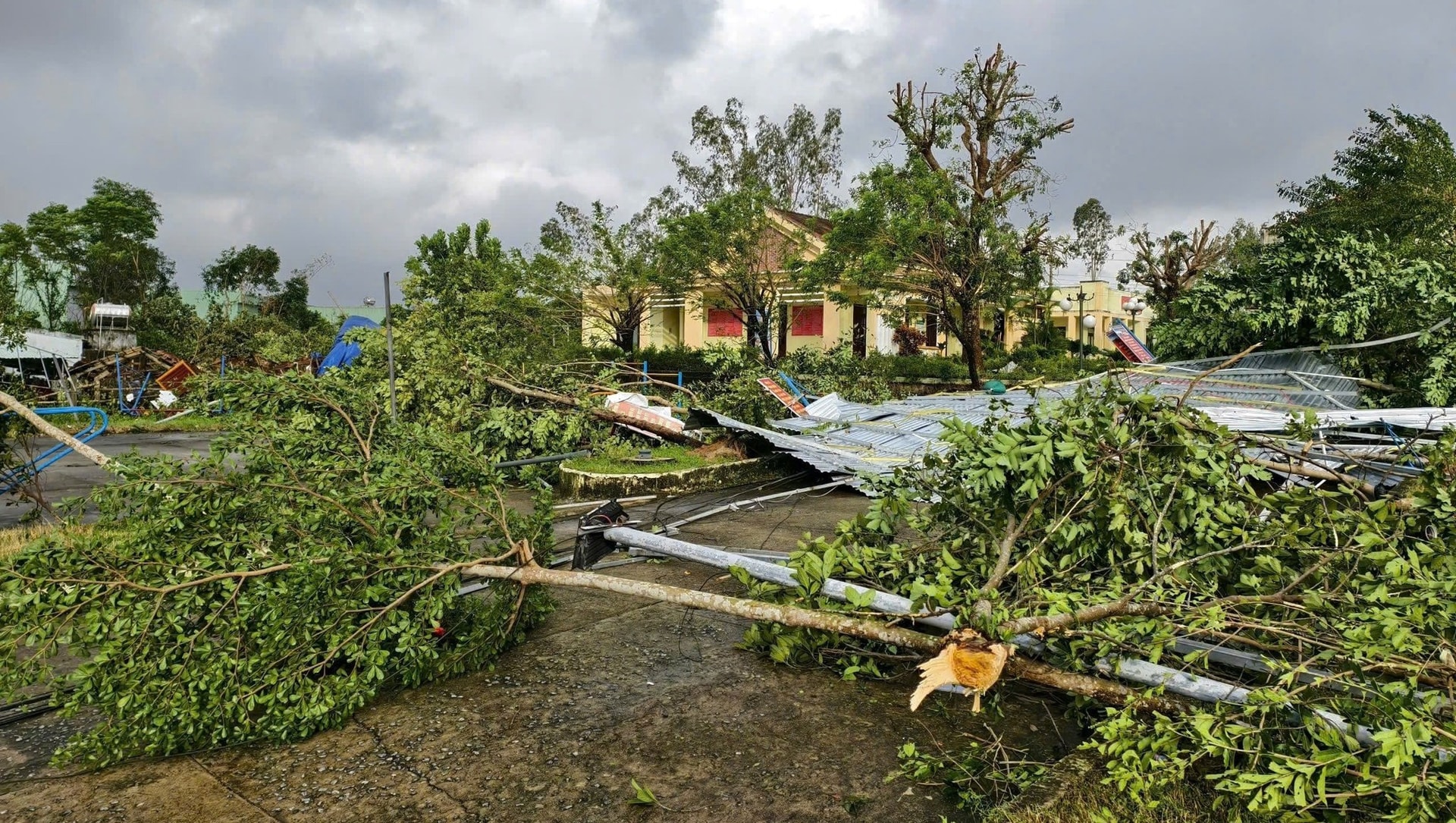 Khu vực trước UBND xã Chiên Đàn ngổn ngang sau trận lốc xoáy. Ảnh: Nhóm TK92