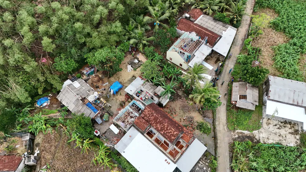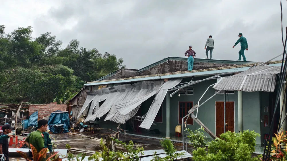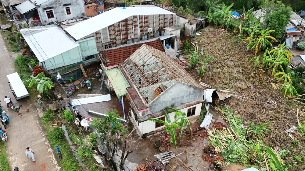 Hàng chục nhà dân tại xã Nguyễn Nghiêm, tỉnh Quảng Ngãi bị lốc xoáy làm tốc mái trong rạng sáng 17-11.