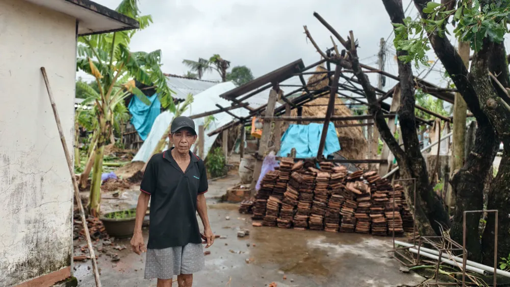 Cùng hoàn cảnh, ông Cao Thanh Luận (55 tuổi, thôn Phước Lợi) cũng đau xót nhìn căn nhà tan hoang sau trận lốc. Ông nhớ lại: “Đang ngủ, nghe gió nổi lên thì xung quanh cây gãy, ngã tạo ra những âm thanh hỗn loạn. Sau đó, mái ngói nhà tôi bắt đầu bị thổi tung, đổ xuống nền. Hai vợ chồng thấy vậy ôm che cho nhau. Nhà chỉ có hai vợ chồng già. Cũng may người không bị gì”.