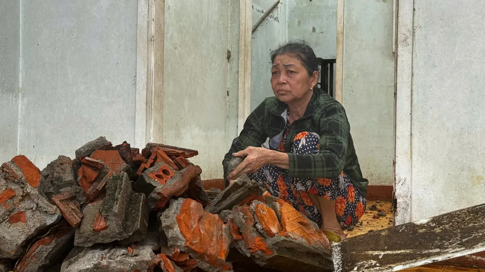 “Hồi giờ chưa thấy cảnh nào như cảnh này, đây là lần đầu tiên trong đời thấy, quá khủng khiếp”, bà Chi bàng hoàng. Ảnh: Nhà bà Chi sau trận lốc