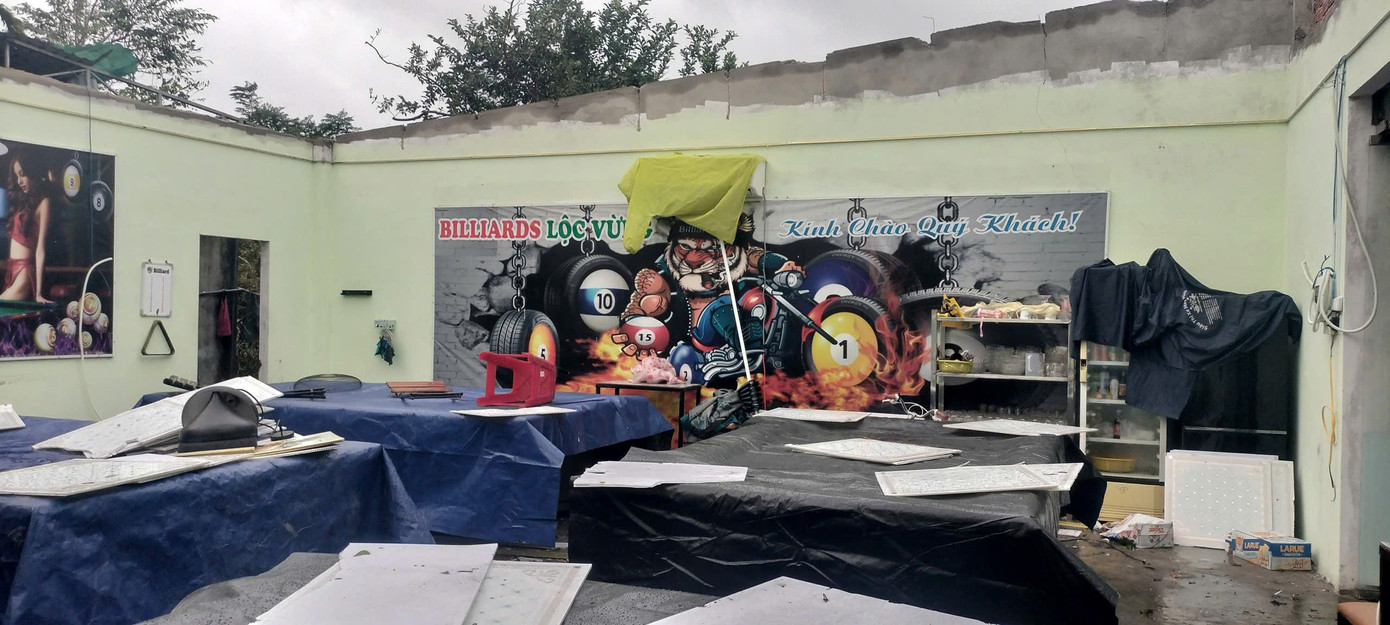 Lốc xoáy khiến nhiều nhà dân ở xã Chiên Đàn, TP Đà Nẵng tốc mái, hư hỏng.