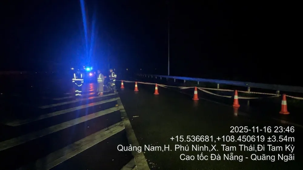 Vụ việc xảy ra lúc 22 giờ 15 ngày 16-11, khiến các phương tiện không ra vào được nút giao trạm thu phí Tam Kỳ.