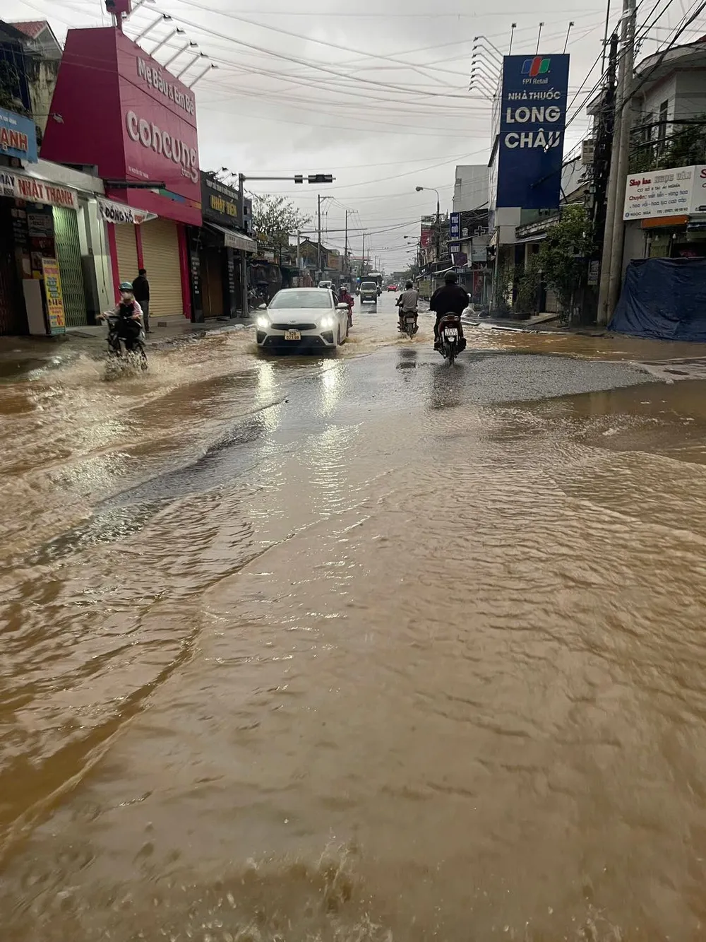 Ở xã Đại Lộc, đường huyện đoạn qua cầu Ngoại Thương ở gần trung tâm xã này bị ngập, nước tràn qua mặt đường gần 70 cm.