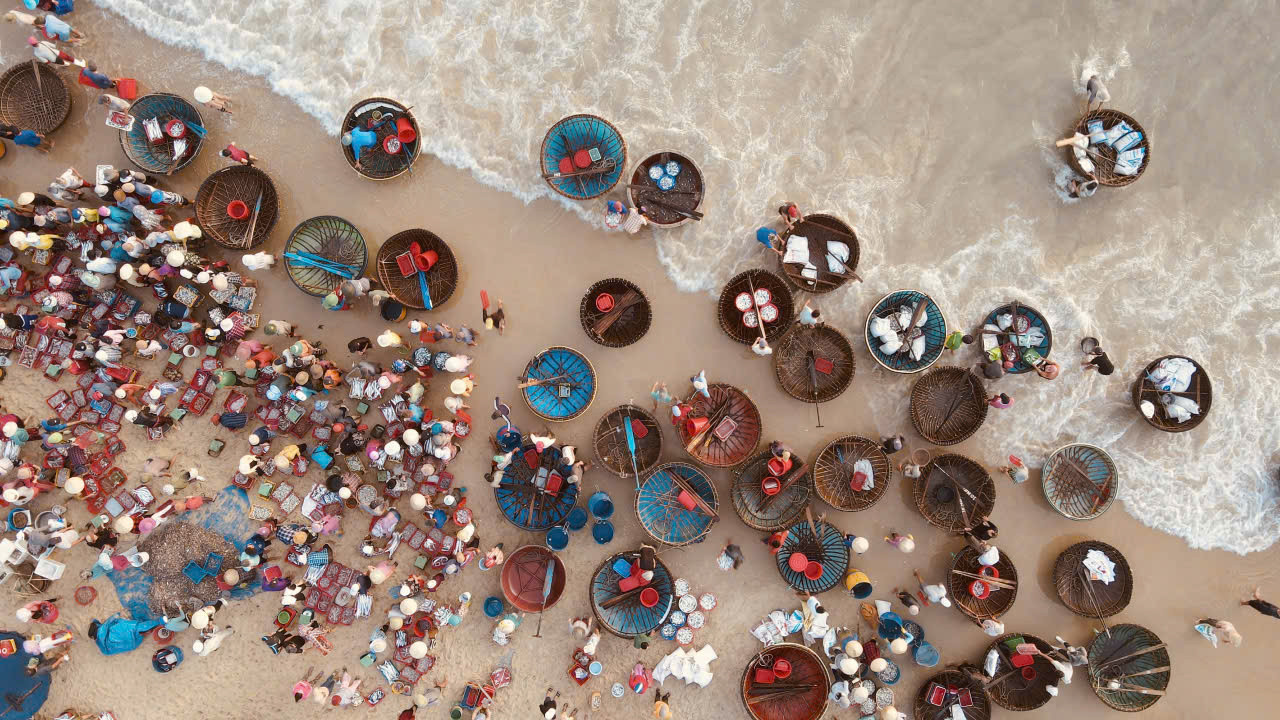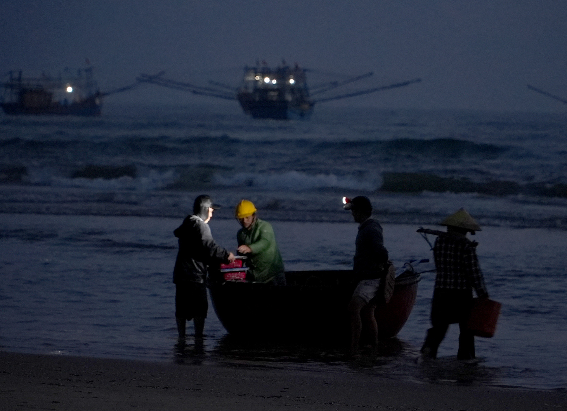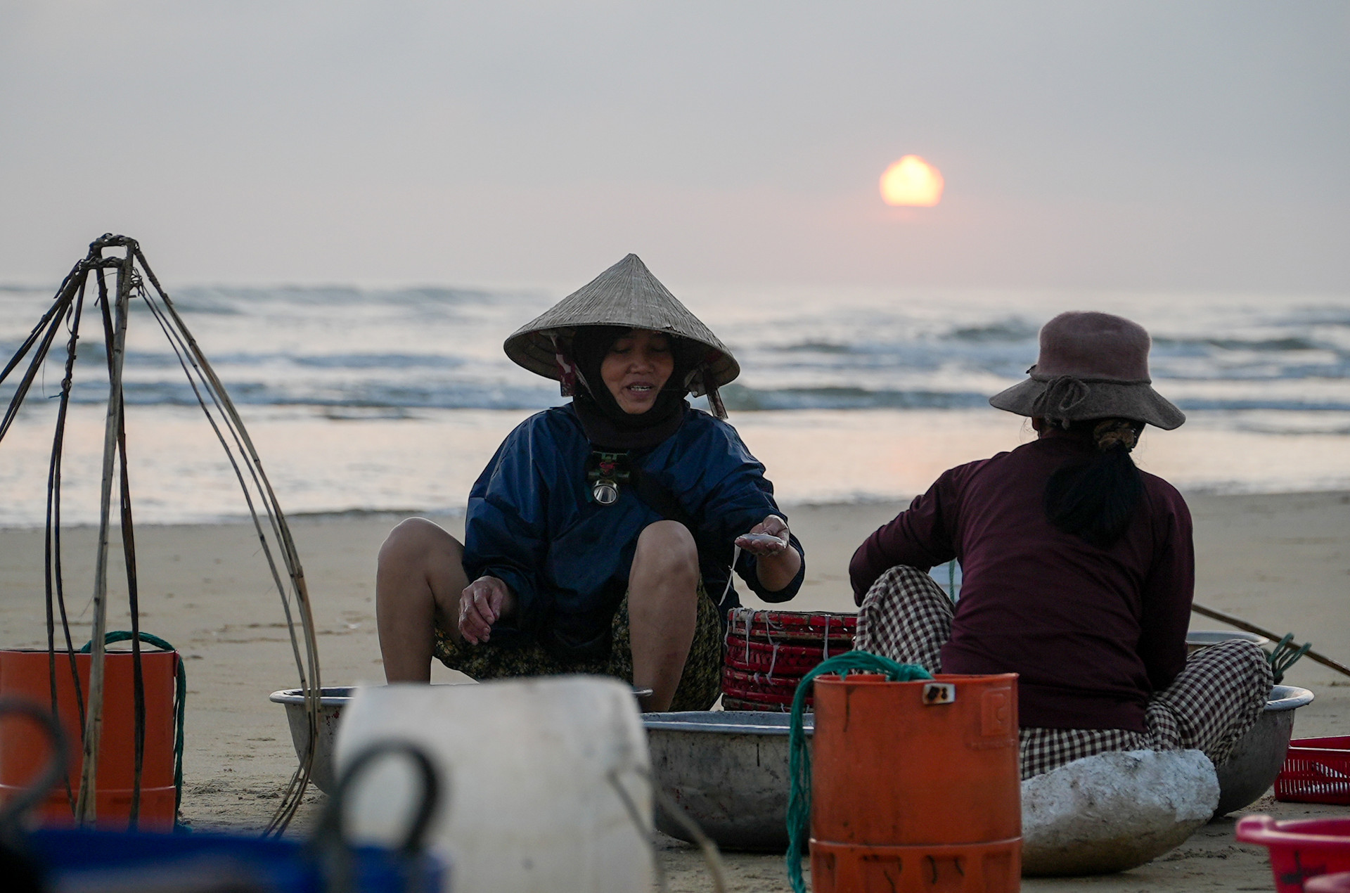 Những mẻ cá tươi rói nhanh chóng được phân loại, bốc dỡ, đưa lên bờ tiêu thụ. Trên bến, thương lái tất bật thu mua, tạo nên khung cảnh lao động khẩn trương, rộn ràng phấn khởi.