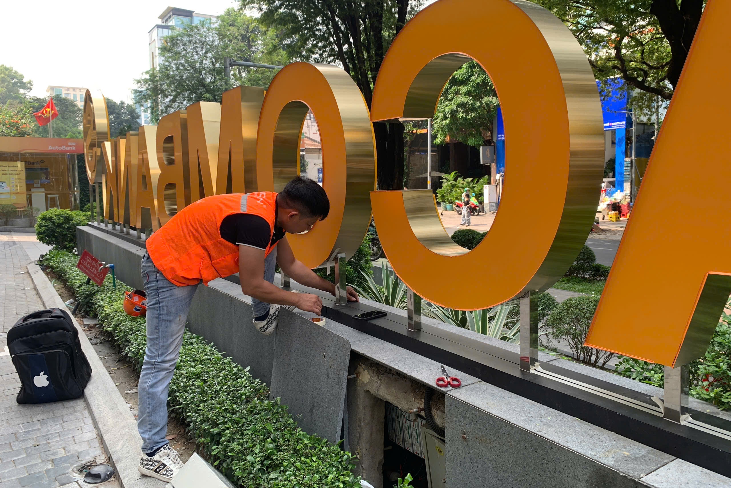 Theo đơn vị thiết kế, thi công, việc lắp đặt logo Sacombank bắt đầu từ ngày 19/12 và đến nay gần như đã hoàn tất. Ảnh: Thảo Liên.