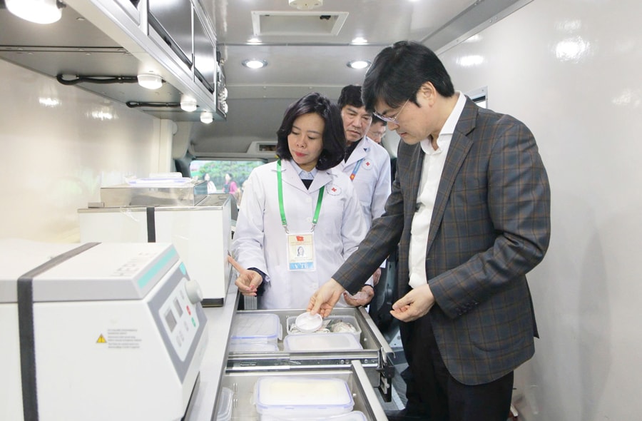 TS.BS Nguyễn Trọng Diện kiểm tra trang thiết bị, dụng cụ trên một xe y tế chuyên dụng. Ảnh: Minh Thu