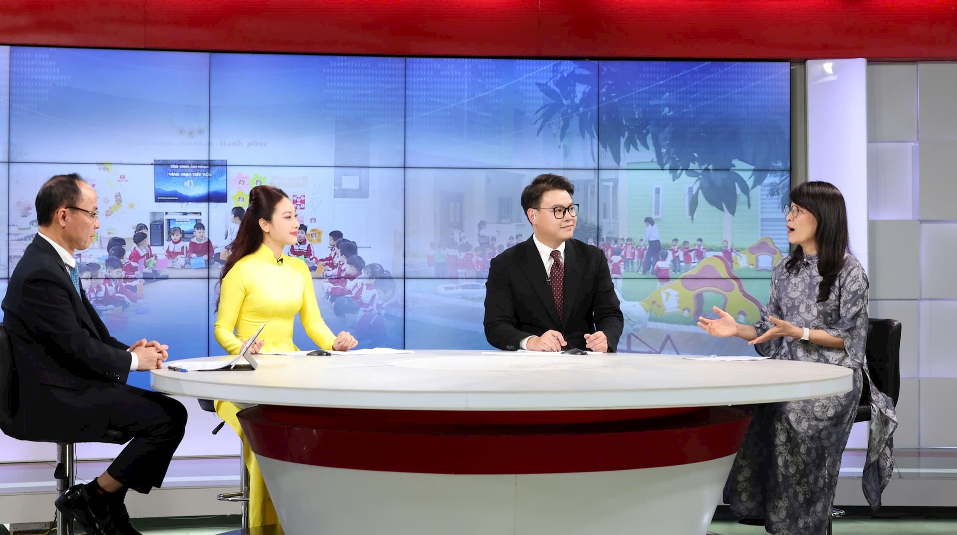 Ông Nguyễn Quang Tuấn, Phó Giám đốc Sở Giáo dục và Đào tạo Hà Nội; Tiến sĩ Nguyễn Thị Thu Anh, thành viên Hội đồng quốc gia Giáo dục và Phát triển nhân lực chia sẻ câu chuyện xung quanh chủ đề: Xây dựng trường học - Đầu tư tương lai tại Chương trình thời sự đặc biệt của Cơ quan Báo và Phát thanh, Truyền hình Hà Nội, tối 11-3. Ảnh: Thanh Hải