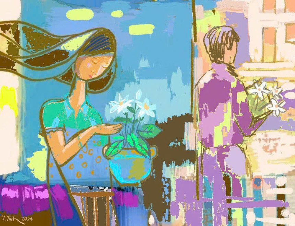 Tháng Tư lại về, mang theo cái nắng dịu dàng và hương hoa loa kèn thoang thoảng len lỏi qua từng con phố. Linh đứng bần thần trước góc ban công nhỏ, nơi những chậu hoa cô dày công chăm sóc nay đã bắt đầu ươm nụ khoe sắc. Những bông hồng đỏ tươi, khóm hoa nhài bung sắc trắng muốt tỏa hương thơm dìu dịu.