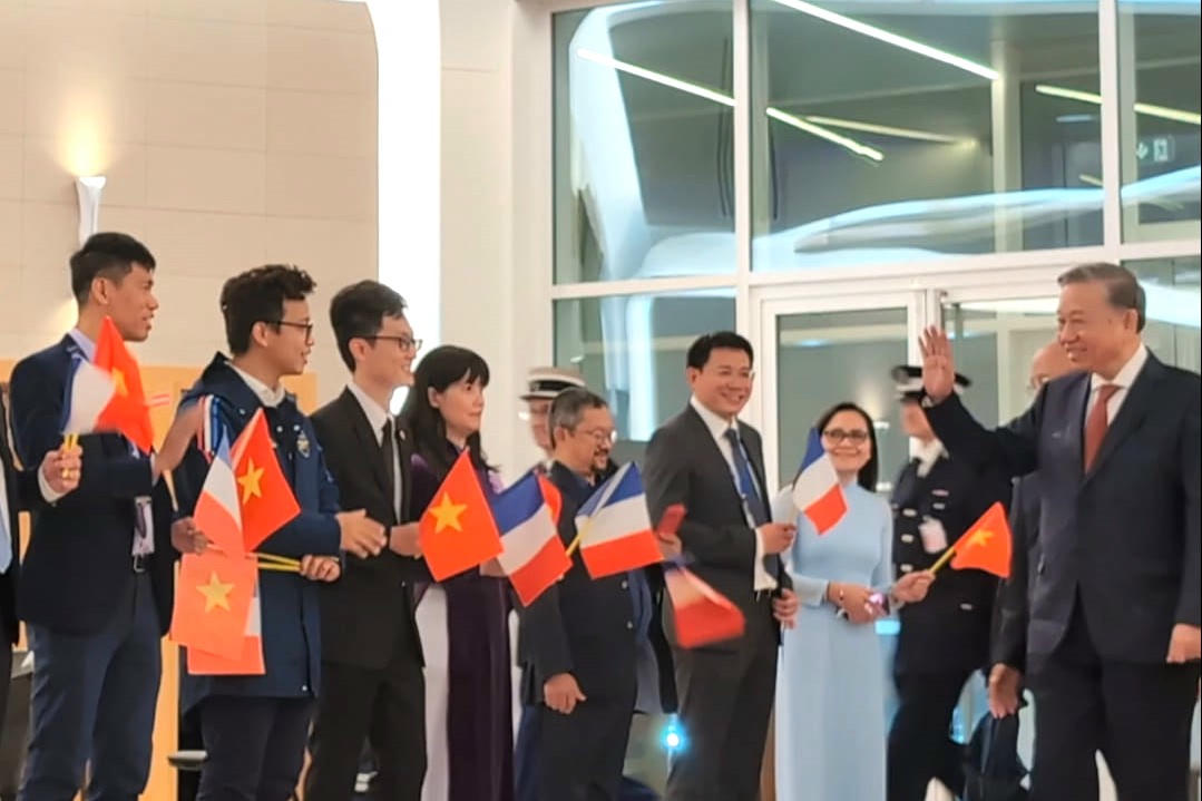 Đoàn đại diện cộng đồng người Việt Nam ở Pháp đón Tổng Bí thư Tô Lâm trong chuyến thăm chính thức Cộng hòa Pháp, tháng 10/2024. (Tác giả thứ hai từ trái sang)