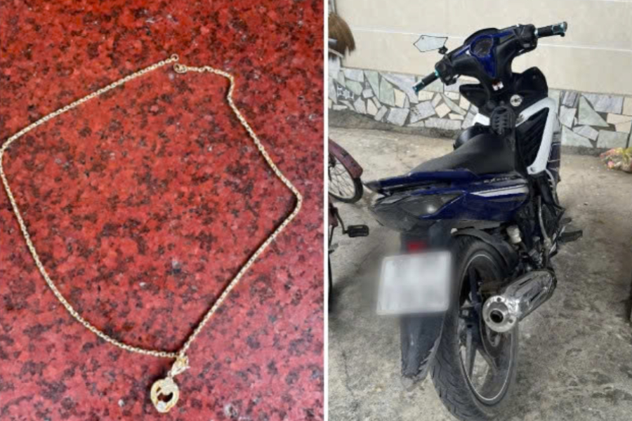 Tang vật và chiếc xe máy Vũ mượn của bạn để đi cướp.
