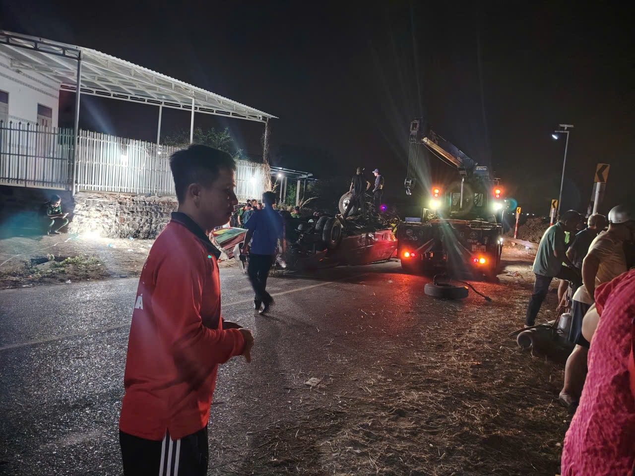 Thời điểm này, xe khách biển số 86H-045.61 do ông Sơn điều khiển chở thợ lặn di chuyển từ hướng Mũi Né về Phan Rí Cửa thì xảy ra sự cố và xe lao xuống vực lề rồi lật khiến 3 người chết tại hiện trường, 1 người chết trên đường đi cấp cứu và 11 người bị thương.