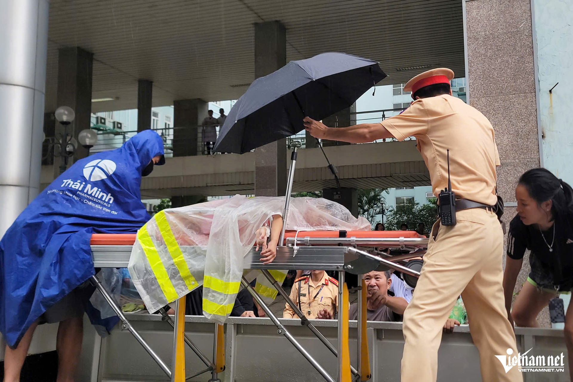 Lúc này, tổ công tác của Đội CSGT đường bộ số 7 (Phòng CSGT Công an Hà Nội) đang ứng trực tại hiện trường đã nhanh chóng dùng ô tô đặc chủng để đưa các bệnh nhi đến bệnh viện. Do một bé 5 tuổi phải nằm trên cáng, các cán bộ, chiến sĩ CSGT đã hỗ trợ đưa lên thùng xe.