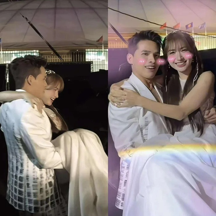 Hòa Minzy và Quốc Thiên thân thiết ngoài đời.