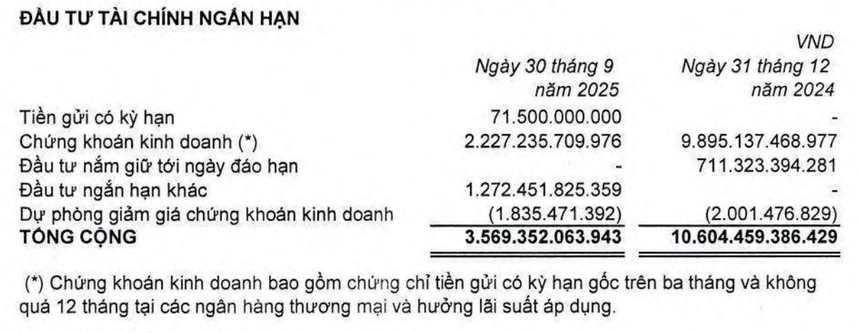 Điểm đáng lưu ý, trong kỳ tài sản giảm liên quan chủ yếu khoản mục đầu tư tài chính ngắn hạn giảm 66,3% so với đầu năm, tương ứng giảm 7.035,1 tỷ đồng, về 3.569,4 tỷ đồng.