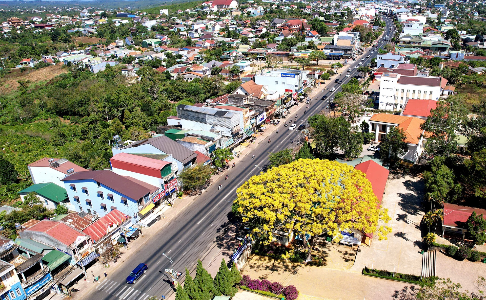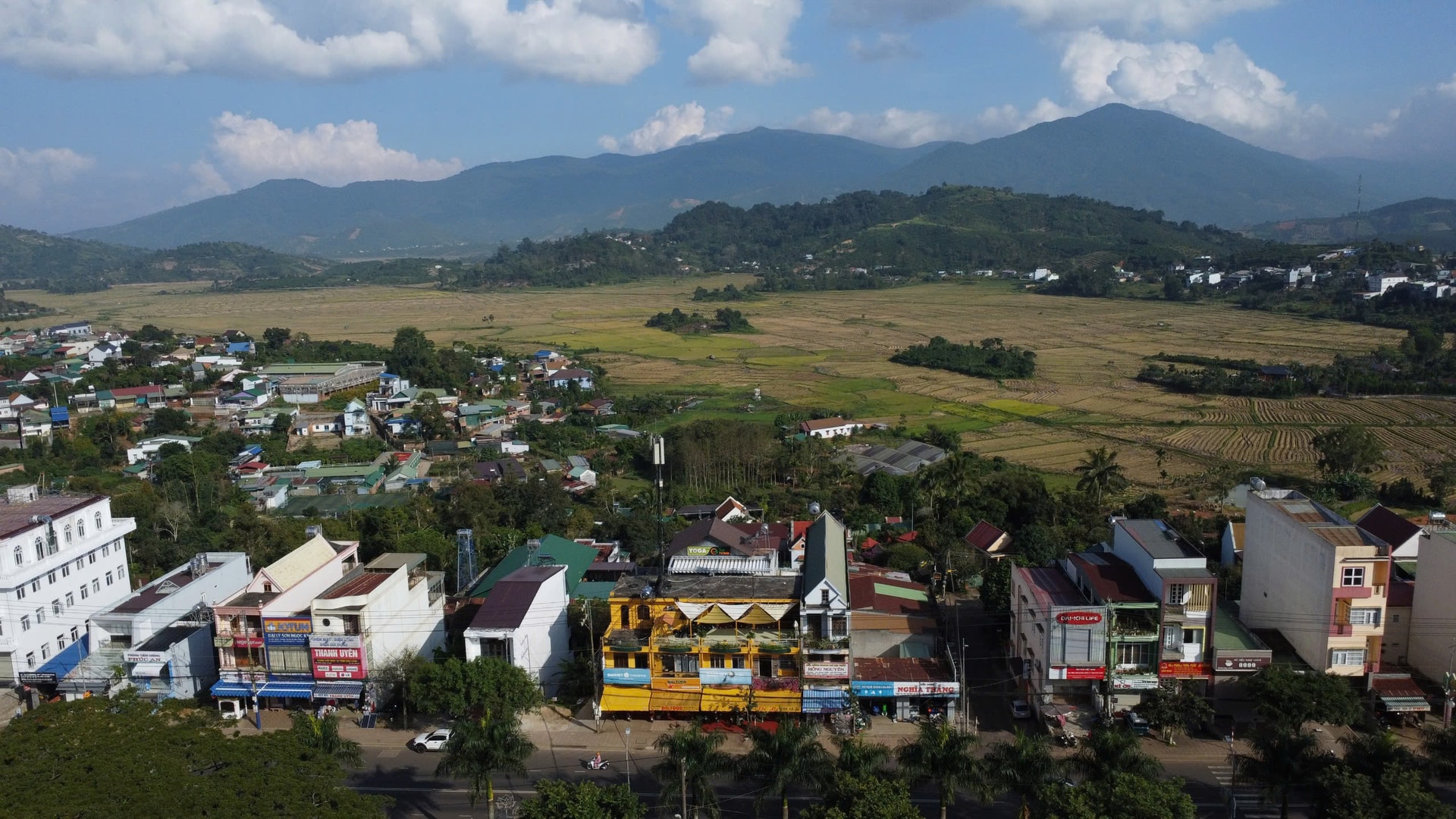 Một góc trung tâm xã Di Linh, nằm dọc Quốc lộ 20