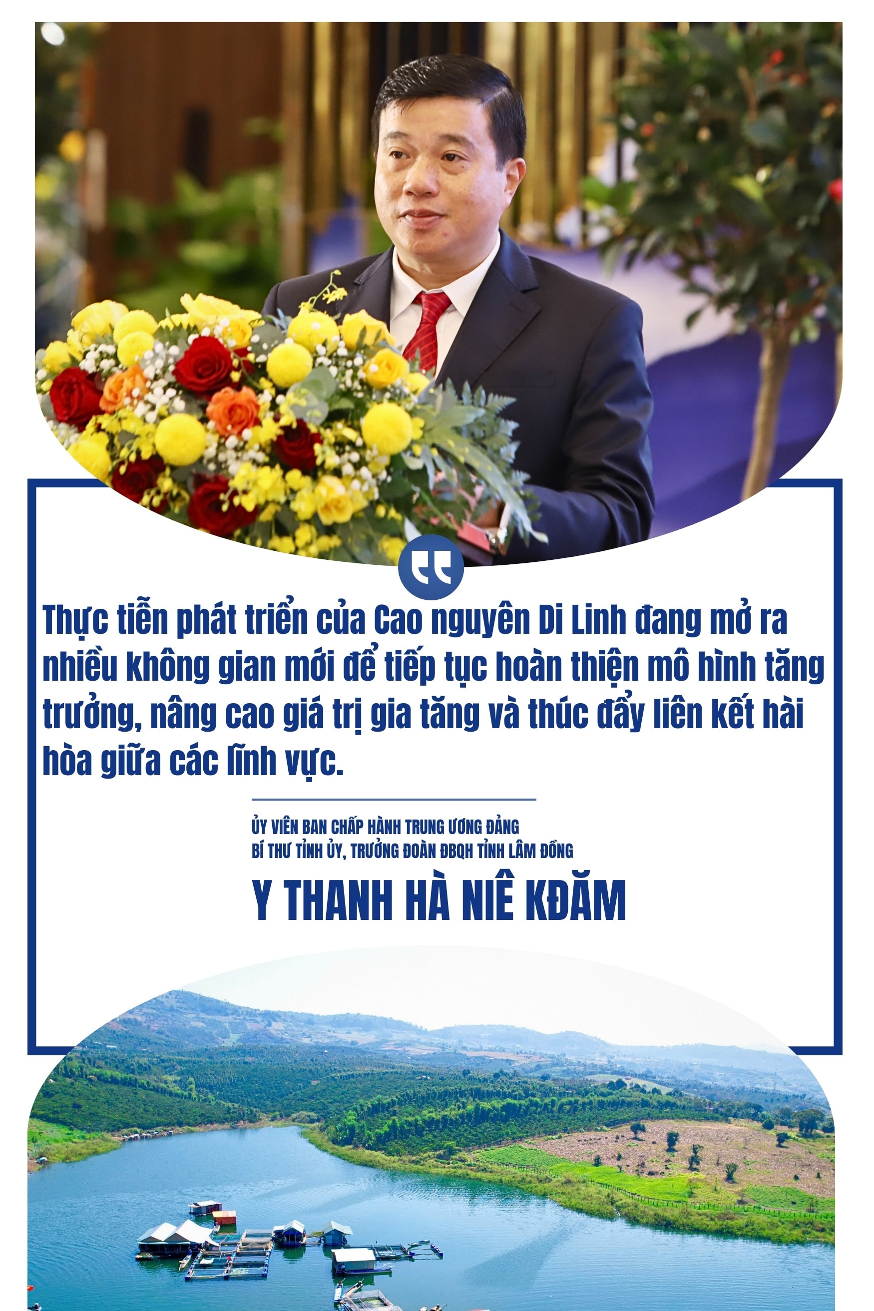 Tại Hội thảo quốc tế Chiến lược và tầm nhìn mới cho phát triển Cao nguyên Di Linh diễn ra mới đây, Ủy viên Ban Chấp hành Trung ương Đảng, Bí thư Tỉnh ủy, Trưởng Đoàn ĐBQH tỉnh Lâm Đồng Y Thanh Hà Niê Kđăm nhấn mạnh, Di Linh không chỉ là điểm giữa về địa lý, mà đang được định hình trở thành một cực tăng trưởng mới, có khả năng lan tỏa và dẫn dắt phát triển trong giai đoạn tới cho Lâm Đồng.