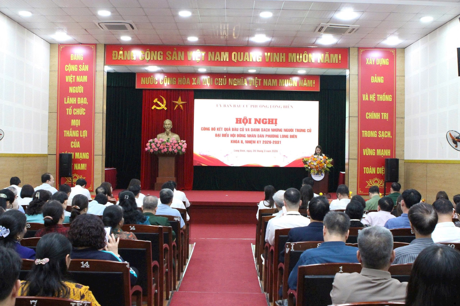 Về kết quả bầu cử đại biểu HĐND phường Long Biên nhiệm kỳ 2026-2031: tổng số người ứng cử là 36 người; số đại biểu trúng cử là 22 đại biểu, đạt tỷ lệ 61,1%. Không có đơn vị bầu cử nào phải tổ chức bầu cử thêm hoặc bầu cử lại.