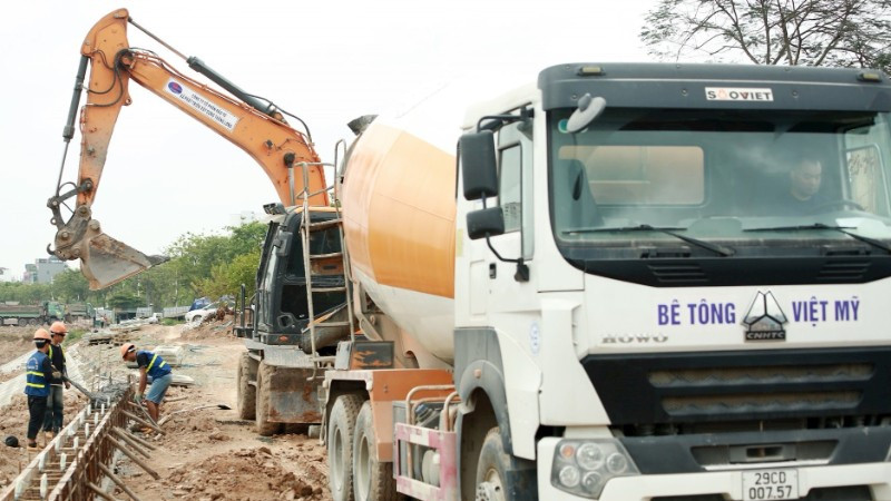 Nổi bật là tại Dự án Xây dựng tuyến mương Việt Hưng-Cầu Bây và hồ điều hòa Cự Khối tại phường Long Biên, máy móc, nhân lực của các nhà thầu đang tập trung làm ngày, làm đêm.