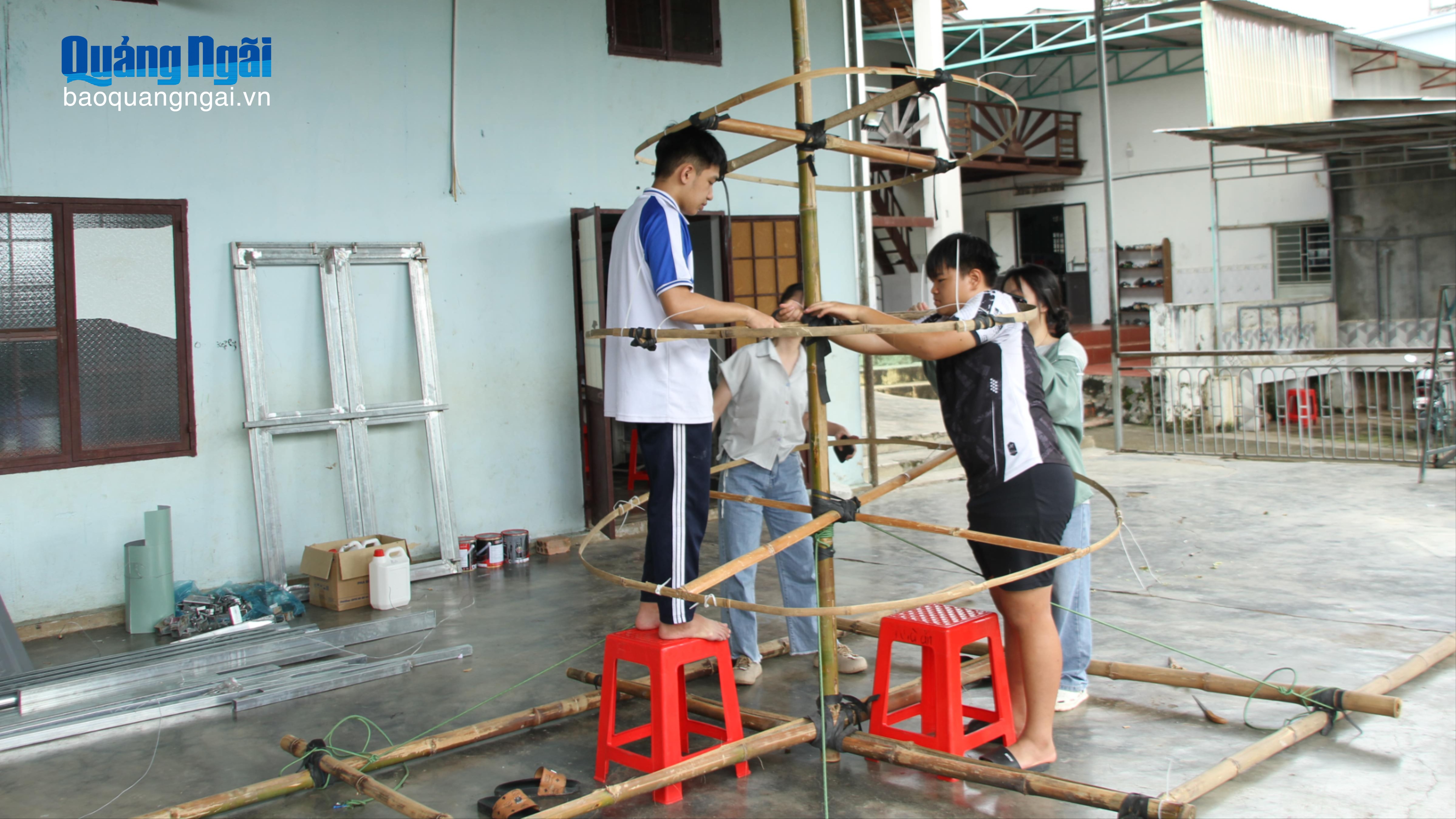 Việc làm lồng đèn khổng lồ giúp học sinh rèn luyện kỹ năng sáng tạo, làm việc nhóm.