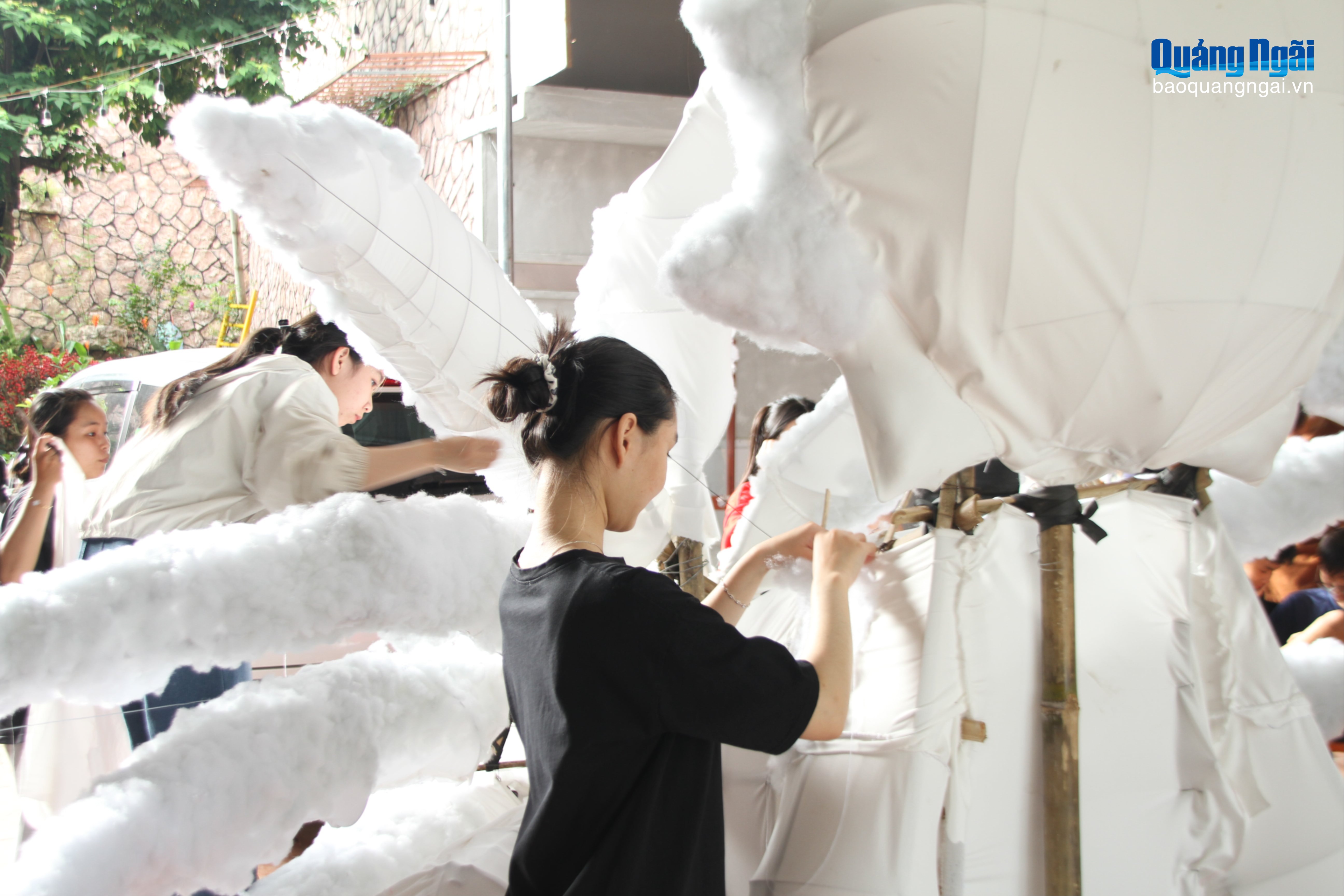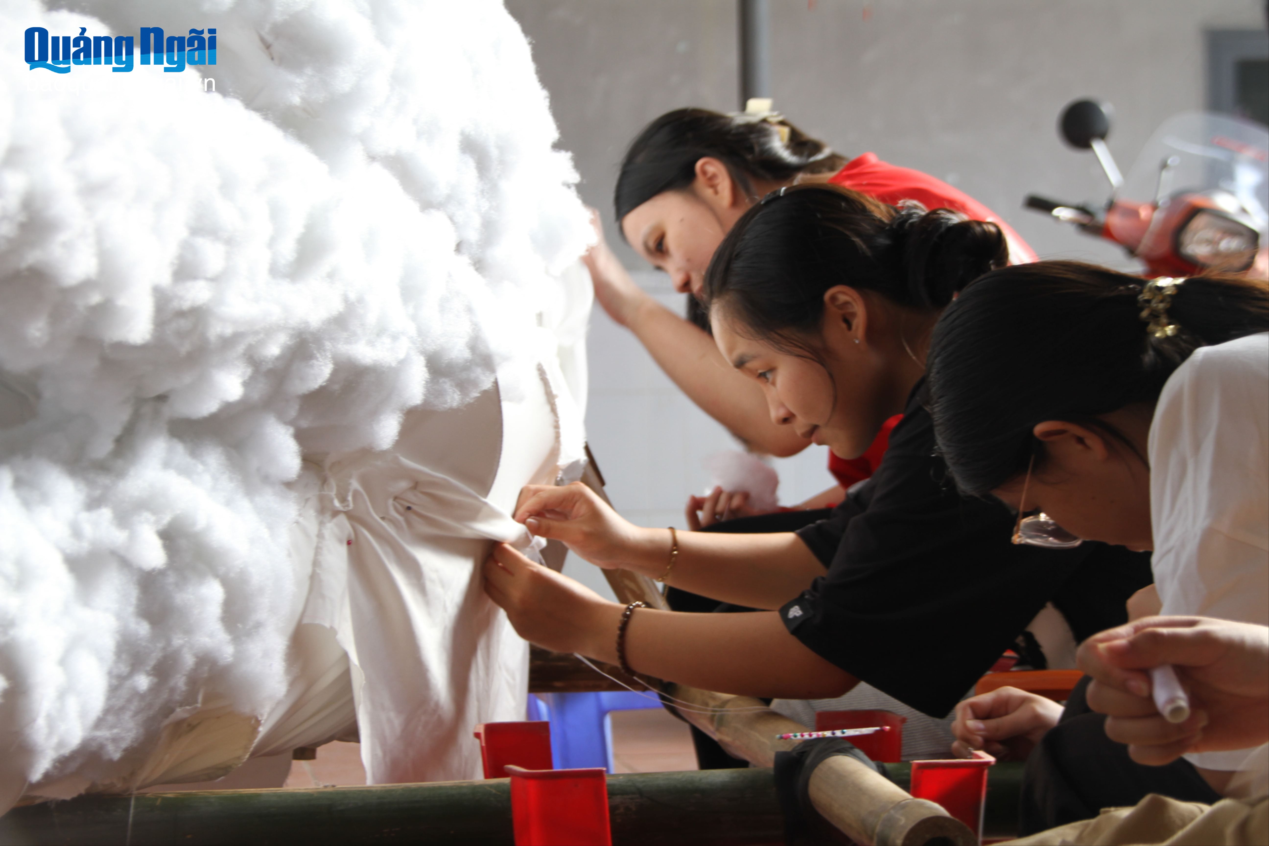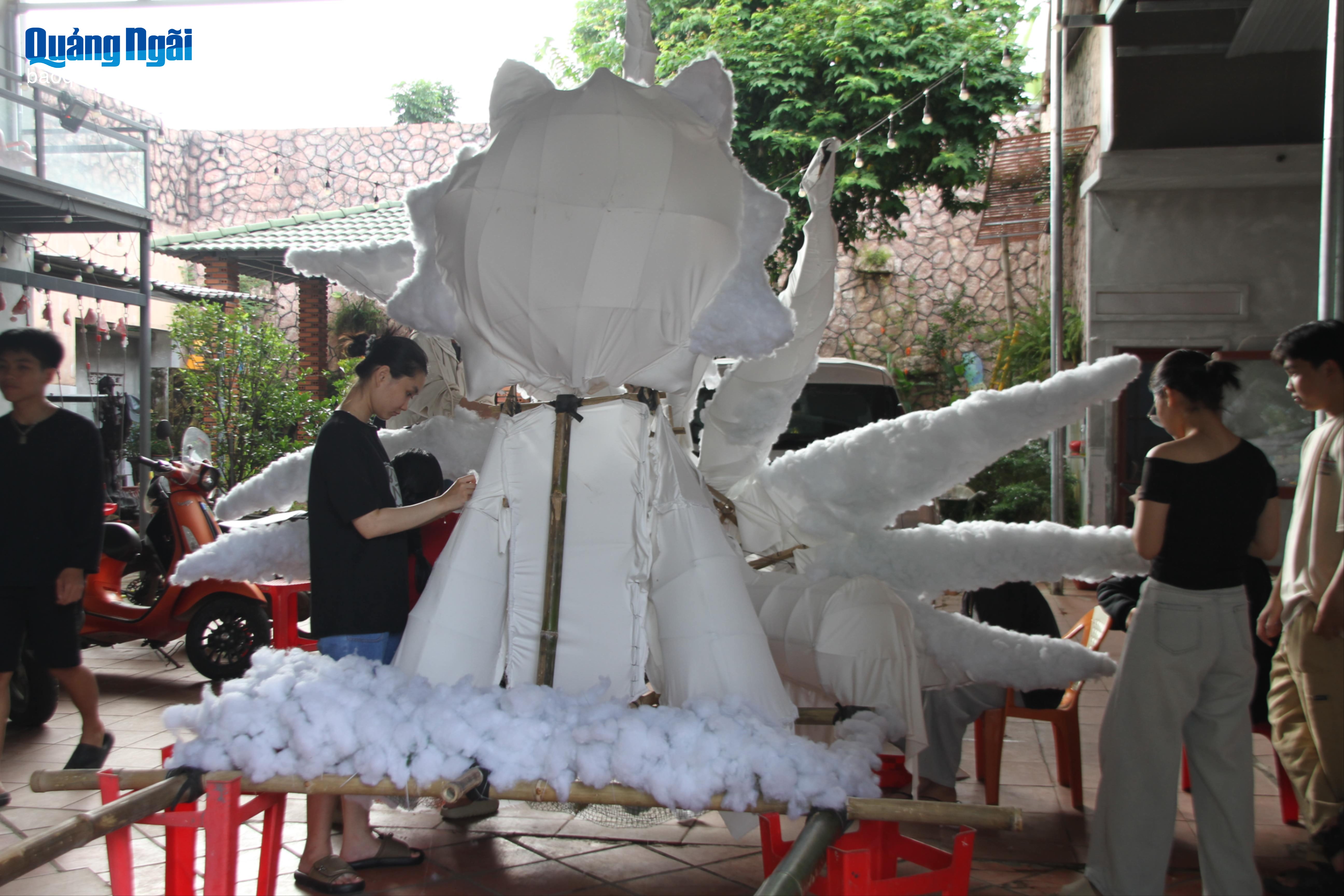 Làm lồng đèn khổng lồ còn đòi hỏi sự khéo léo, tỉ mỉ.