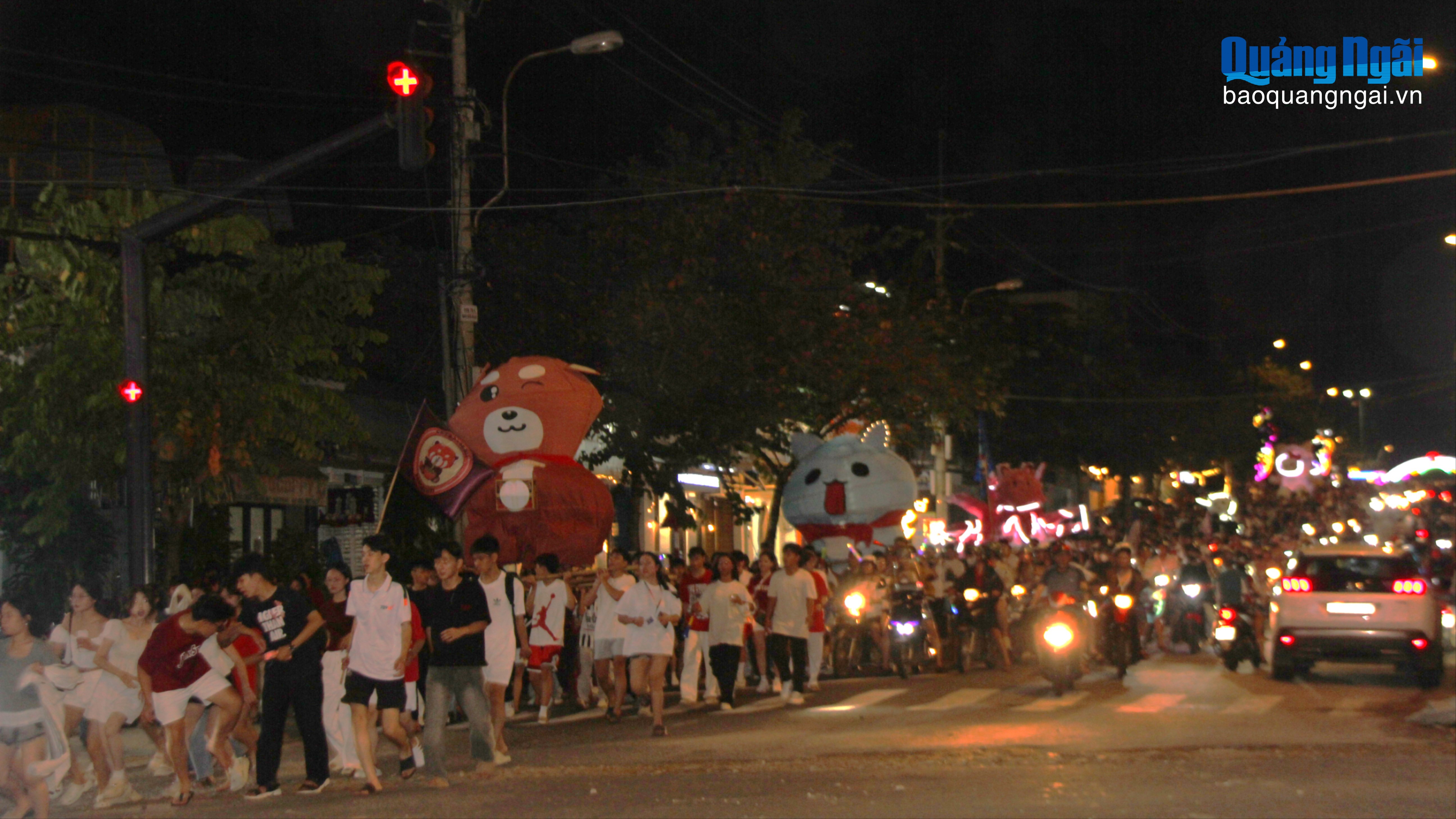 Hàng nghìn người nối đuôi nhau trên các tuyến đường Trần Phú, Phan Đình Phùng, phường Kon Tum, để rước đèn.