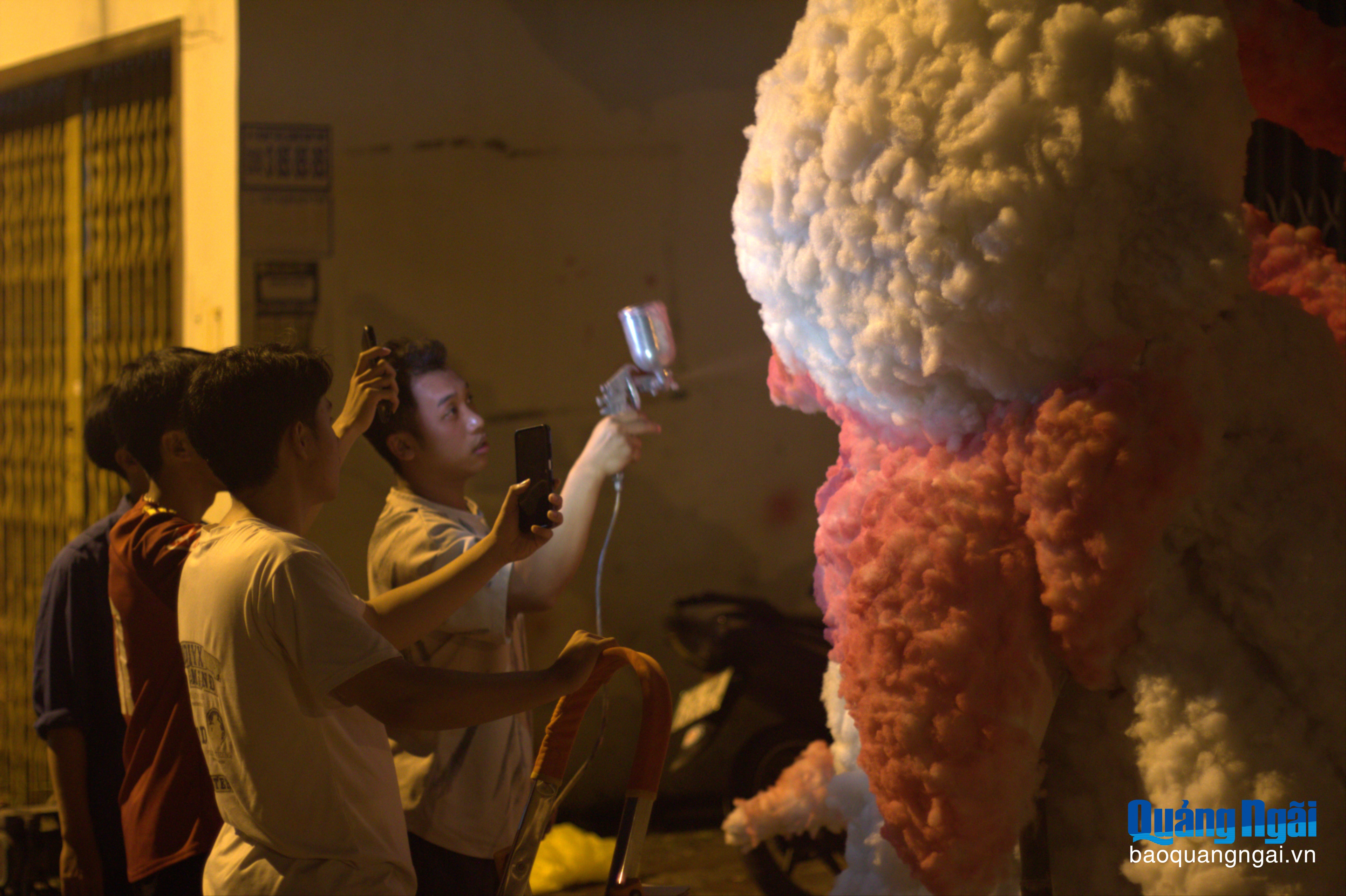 Trước đêm chạy đèn, các em tất bật hoàn thiện những công đoạn cuối cùng.