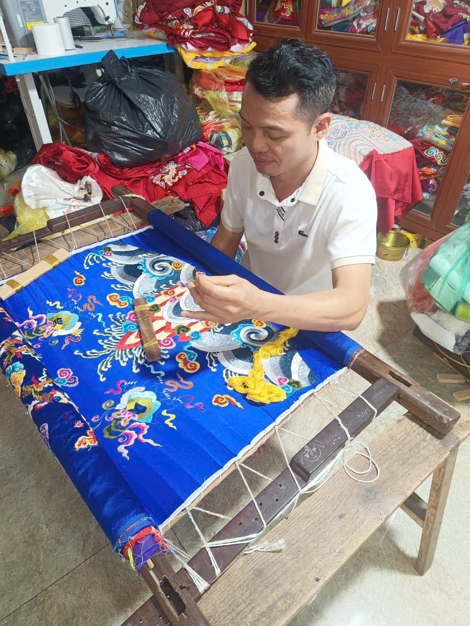 Ông Nguyễn Thế Du đến với nghề từ thủa lên 10 và là thế hệ thứ 3 trong gia đình thêu truyền thống. Ông nói, trong nghề thêu, người thợ không chỉ cần nắm vững kỹ thuật mà còn phải biết thổi hồn vào từng đường kim, mũi chỉ. Nhiều tác phẩm ông Du phải bỏ ra 3, 4 tháng miệt mài mới hoàn thành, kỳ công thêu từng vân mây trên trời, từng con ốc, con sò, bọt li ti trong nước... “Điều quý nhất tôi học được từ ông bà, cha mẹ chính là tình yêu, thái độ trân trọng nghề. Thời bao cấp, gia đình tôi nhận may trang phục cho các đoàn văn công. Mỗi người chỉ dám ngủ 2, 3 tiếng là trở dậy thay ca thêu cho người khác nhưng đường nét thêu vẫn luôn chỉn chu”, ông Du chia sẻ. Học hỏi từ cha, con trai ông hiện là chủ cơ sở thêu may Điển Loan với nhiều sản phẩm thêu chất lượng.