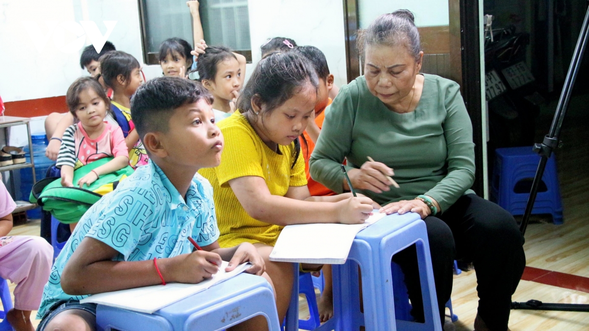 Ngồi nhìn đứa cháu đang say sưa được cô Mươn dạy chữ, cô Lâm Thị Phên, ở phường Sóc Trăng, chia sẻ: “Tôi đưa cháu đến học cô Mươn. Học ở đây, cô không có lấy tiền. Cô dạy trẻ em khó khăn cũng hơn 20 năm nay rồi. Cô rất thương các cháu nhỏ, ngoài dạy chữ còn vận động gạo, tập viết, tặng quà cho các cháu nữa”.