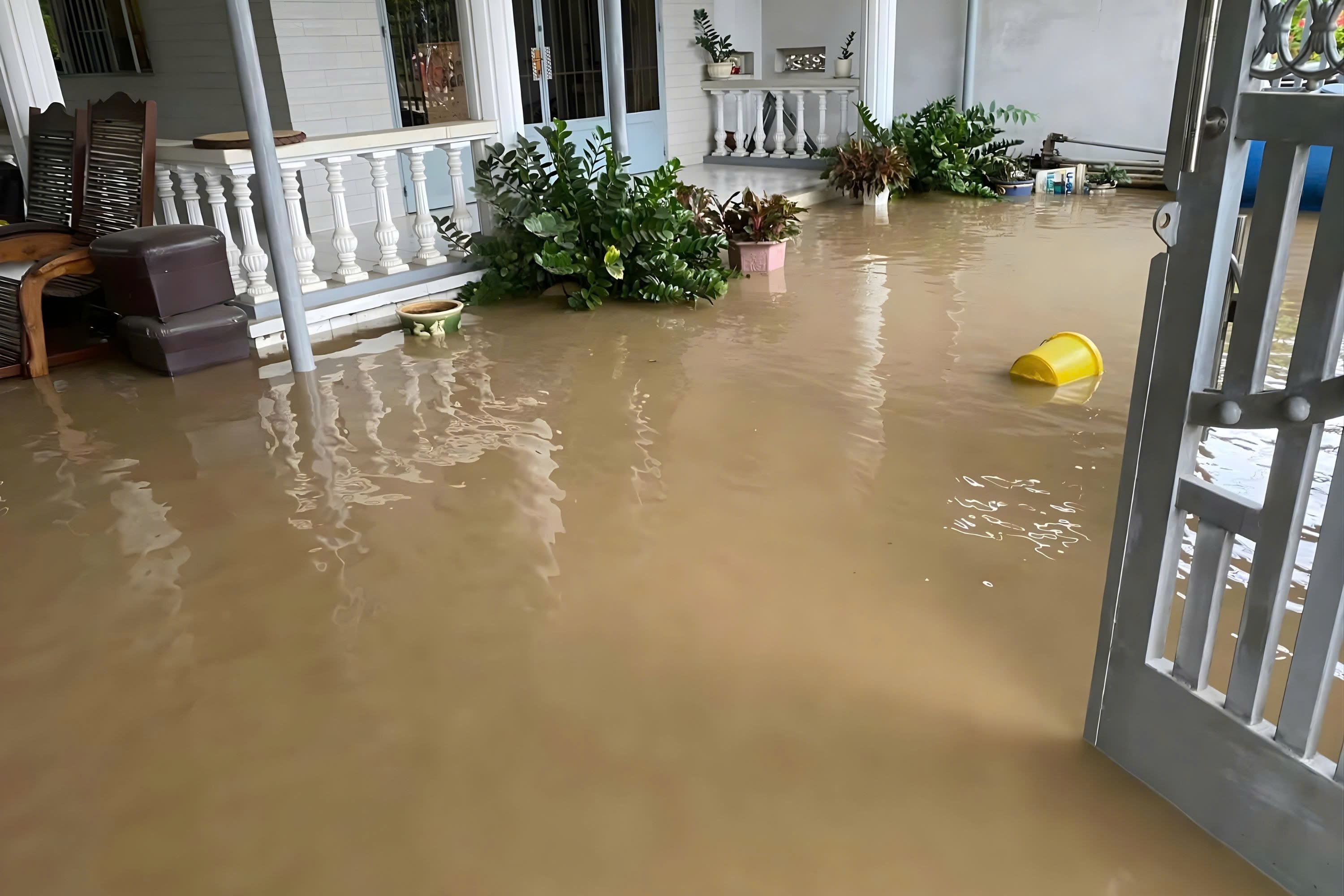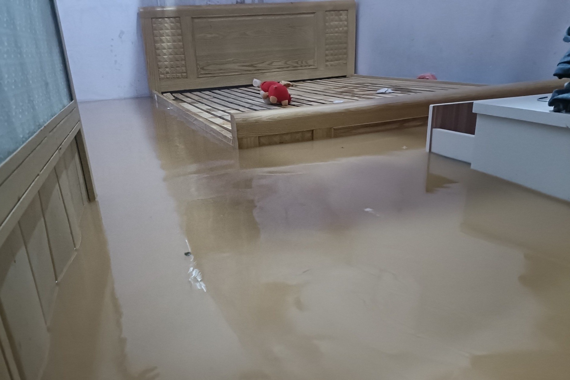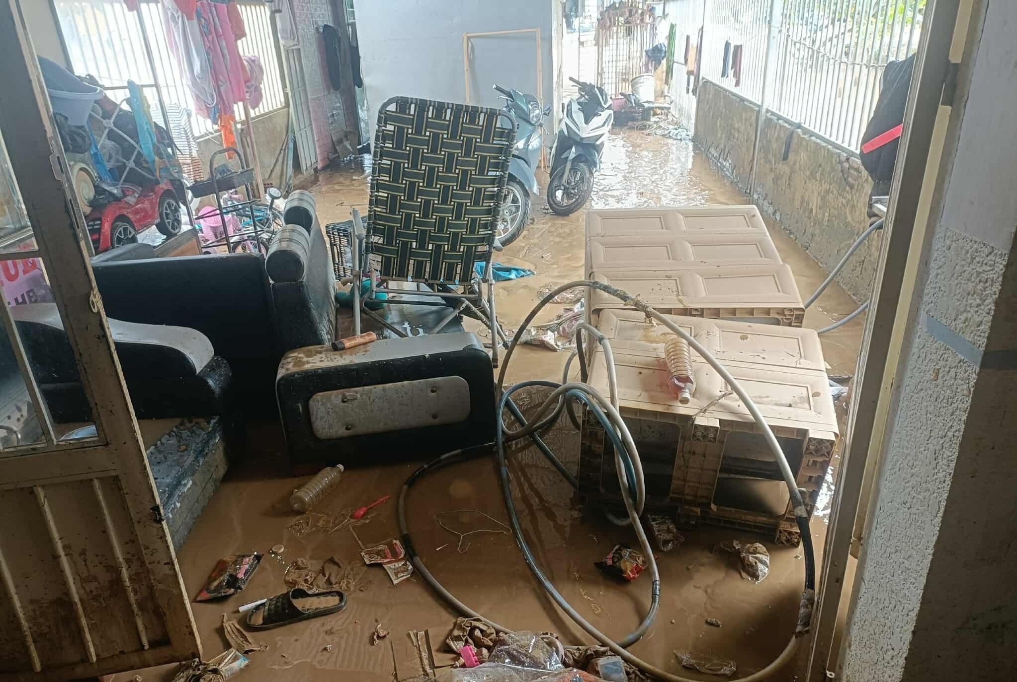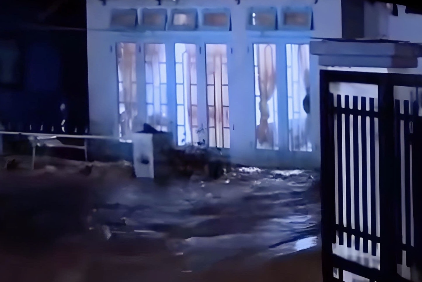 Anh Ngọc Hà (sinh năm 1993, phường Xuân Hương, Đà Lạt cũ) cho biết nước lũ đổ về trong đêm khiến nhiều khu vực ngập nặng. Đang ngủ, anh bất ngờ nghe tiếng hàng xóm hô hoán chạy lũ nên vội mở cửa kiểm tra. Lúc này, nước đã dâng gần tới nền nhà. "May là nhà tôi xây cao nên chỉ bị ngập nhẹ. Một số đồ đạc ngoài sân bị nước cuốn trôi, hư hại. Nhiều nhà khác còn ngập sâu hơn. Đây là lần đầu tiên tôi thấy nước dâng đến mức này", anh Hà kể. Ảnh: Thanh Vi Vlogs.