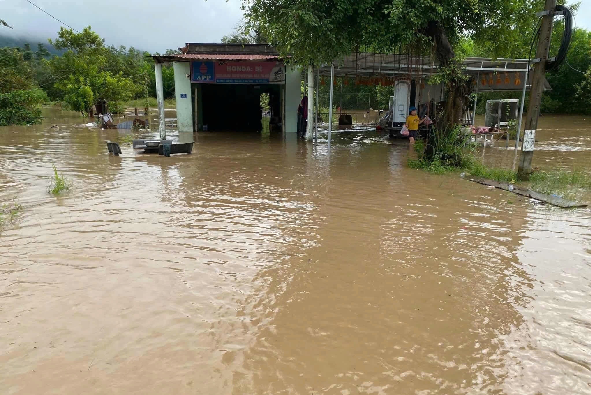 "Mưa lớn kéo dài, lũ bắt đầu đổ về từ khoảng 3h sáng 4/12. Chính quyền địa phương cũng đã có mặt để hỗ trợ người dân", anh Mẫu nói. Ảnh: Lê Trọng Mẫu.