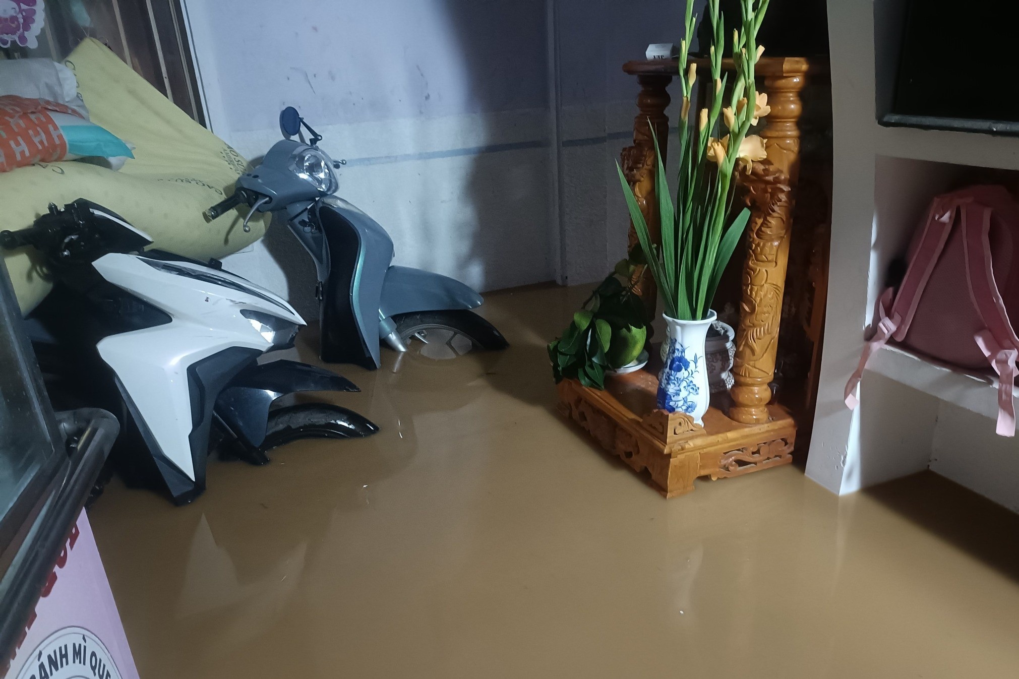Anh Thắng cho biết khu vực nhà anh nằm ở vị trí thường xuyên bị lụt, đỉnh điểm mùa lũ năm nay có tuần ngập đến 3 lần, song chưa trận nào lớn và bất ngờ như đêm qua. Vừa trở về từ chuyến cứu trợ bà con vùng lũ Phú Yên cũ và Khánh Hòa, anh Thắng xót xa khi đến lượt nhà mình cũng thiệt hại nặng vì lũ dữ. Ảnh: Lê Quang Thắng.