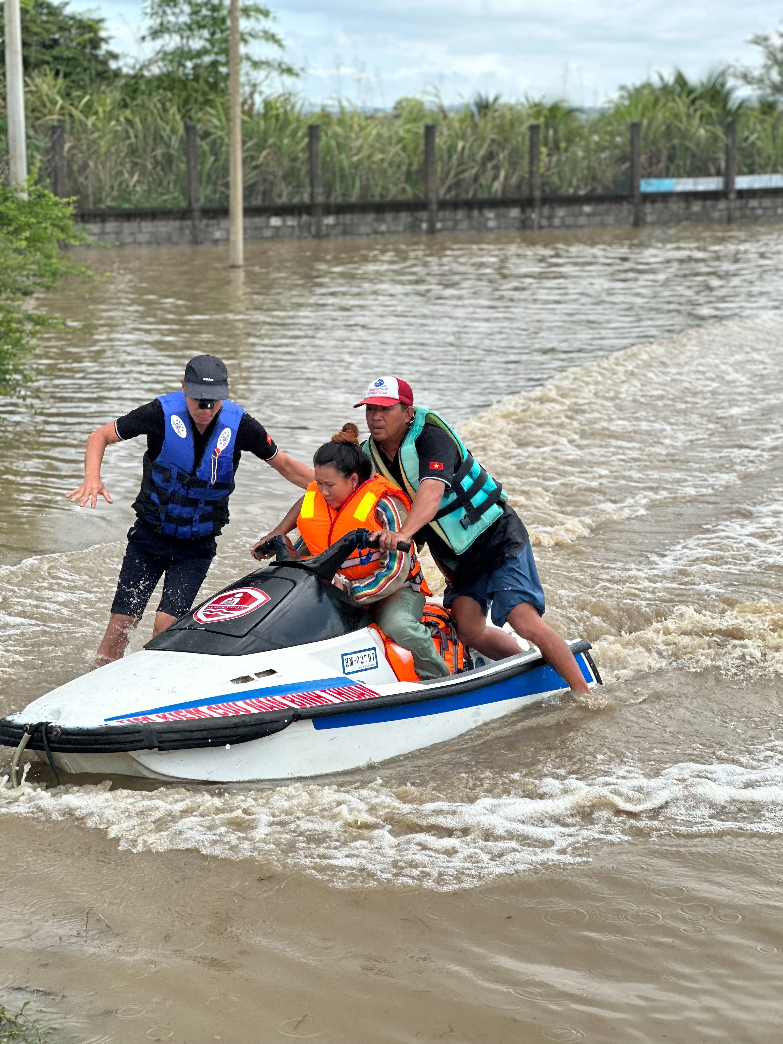 Tại thôn Sông Dinh, xã Suối Kiết, tỉnh Lâm Đồng, anh Lê Trọng Mẫu (sinh năm 1998) cho biết hiện nhiều nhà dân vẫn đang ngập sâu, có nơi nước lên tới ngang ngực. Ảnh: Lê Trọng Mẫu.