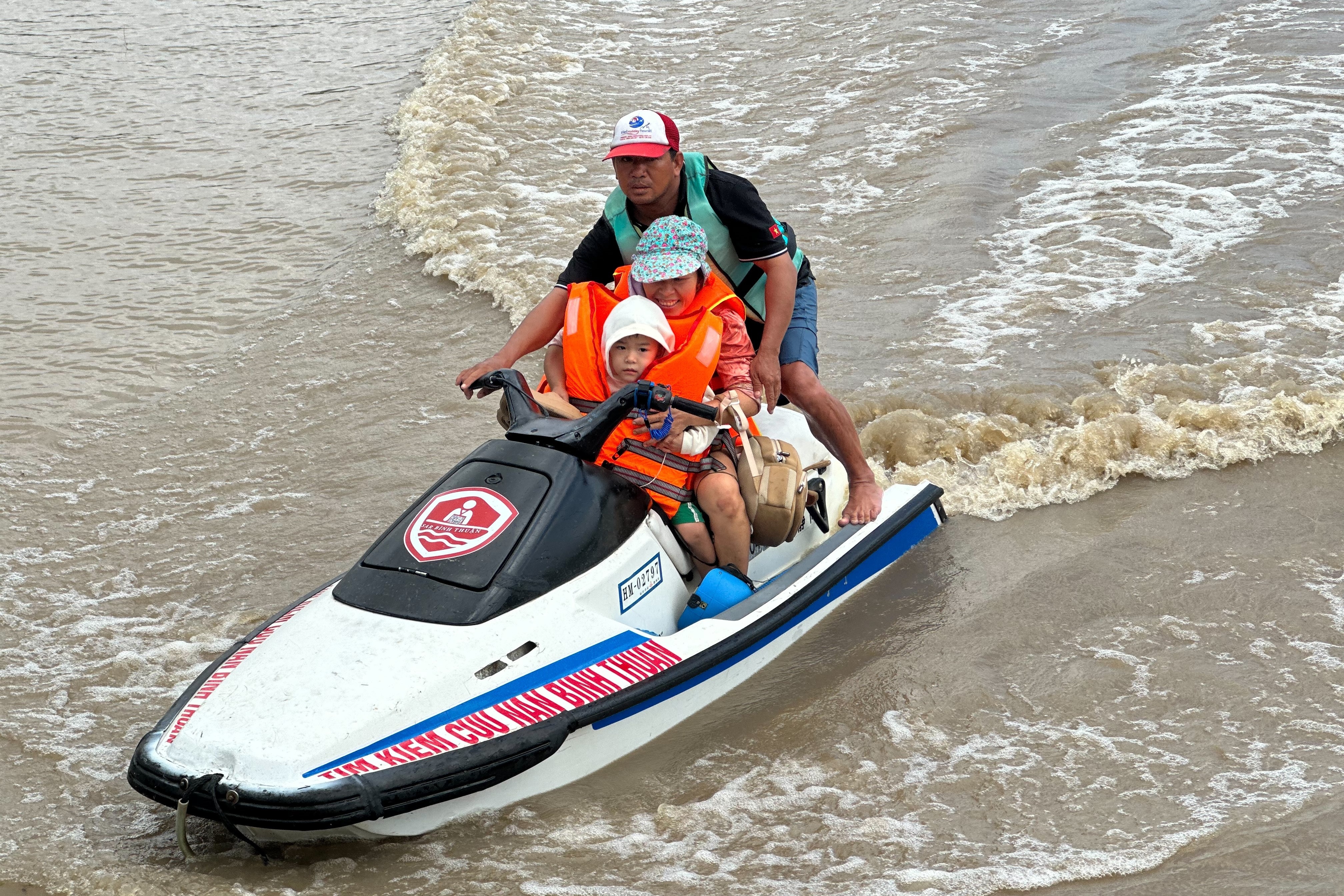 Sáng 4/12, thông tin từ Công an tỉnh Lâm Đồng cho biết mưa lớn kéo dài suốt đêm đã làm nhiều khu dân cư tại các xã, phường bị ngập lụt. Hàng loạt tuyến đường đèo, bờ taluy bị sạt lở, gây chia cắt cục bộ và ảnh hưởng tới an toàn tính mạng của nhân dân. Tại khu vực quốc lộ 1A đoạn qua xã Hồng Sơn (Bình Thuận cũ), lực lượng chức năng tiến hành cứu hộ và sơ tán người dân khỏi vùng nguy hiểm. Ảnh: Nguyễn Trường Sơn.