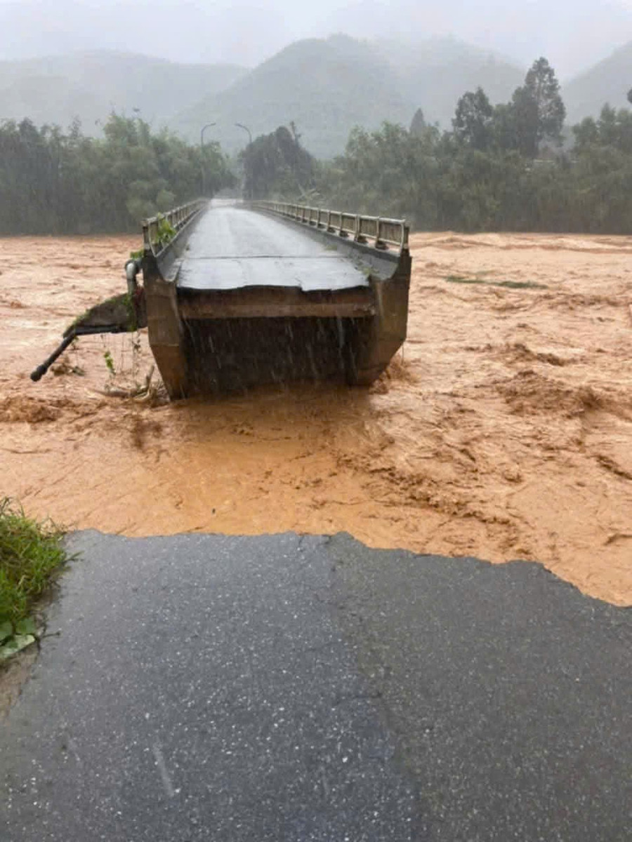 Cầu Le No ở xã Khe Tre, TP Huế bị nước lũ cuốn sập.