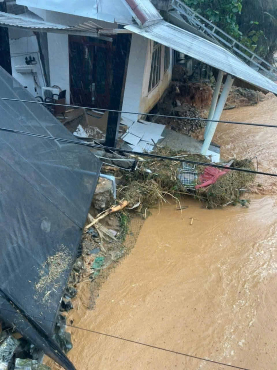Một căn nhà ở ven sông chuẩn bị đổ sập theo cơn lũ.