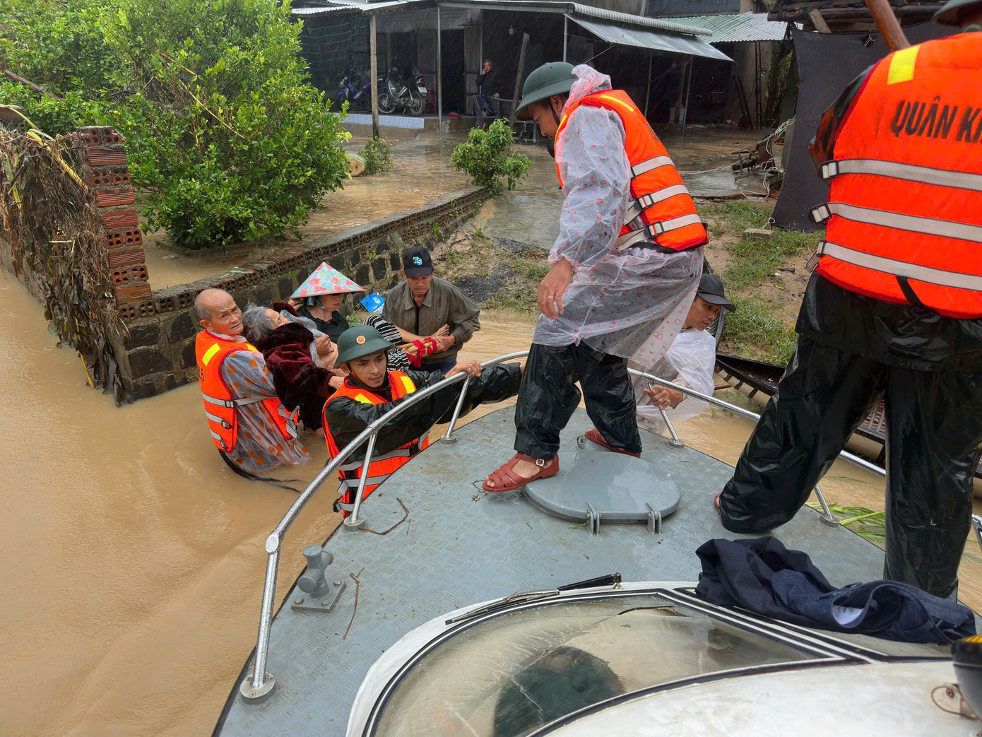 Bộ đội Lữ đoàn 572 (Quân khu 5) sử dụng ca nô, xuồng máy vượt nước chảy xiết đến những điểm bị cô lập để ứng cứu nhân dân xã Tuy An Bắc, tỉnh Đắk Lắk.