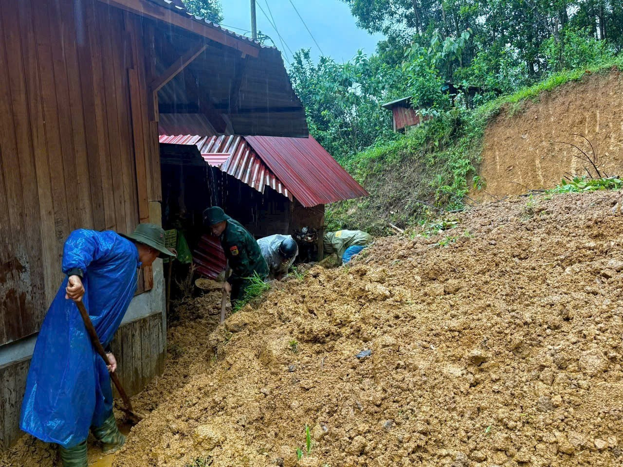 Lực lượng chức năng cũng đã hỗ trợ vận chuyển tài sản, đồng thời vận động người dân di dời đến nơi trú ẩn an toàn sau khi căn nhà của gia đình này bị sạt lở, đất và bùn tràn xuống sát vách nhà.