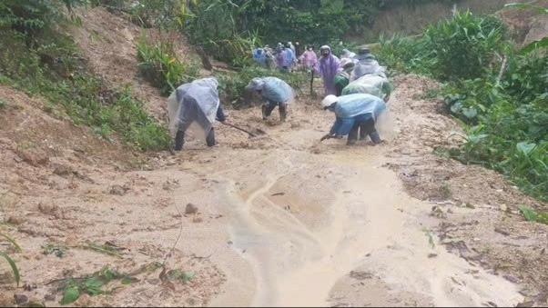Còn tại xã Sơn Hà, mưa lớn gây sạt lở trên tỉnh lộ 626 đoạn qua thôn Nước Nia, đất đá tràn xuống mặt đường. Tuyến đường liên xã Đăk Ngọk - Ngọk Wang (xã Đăk Ui) bị nước từ đồi cao tràn qua, làm xói lở taluy âm sâu khoảng 5m, có nguy cơ nứt gãy và chia cắt hoàn toàn.