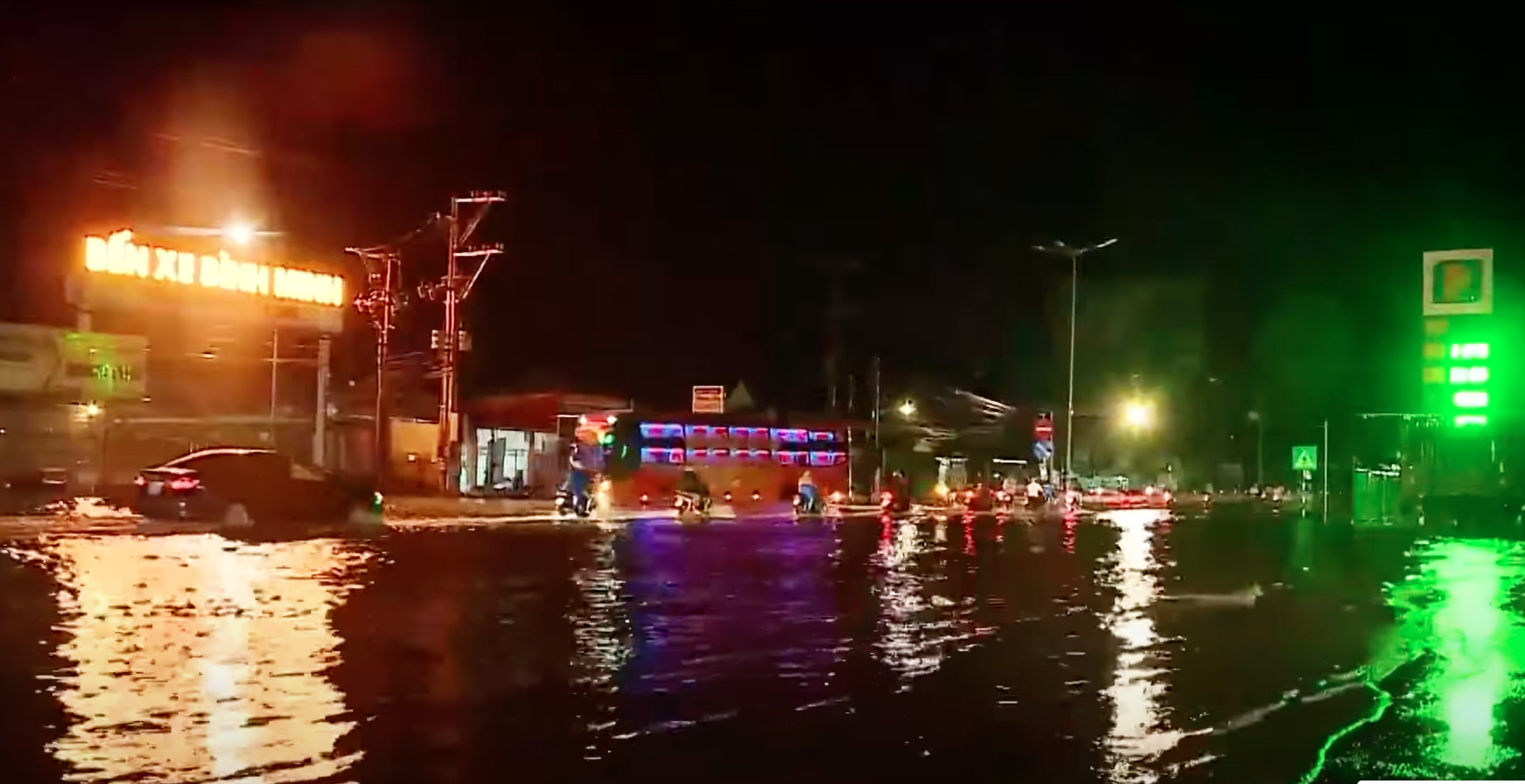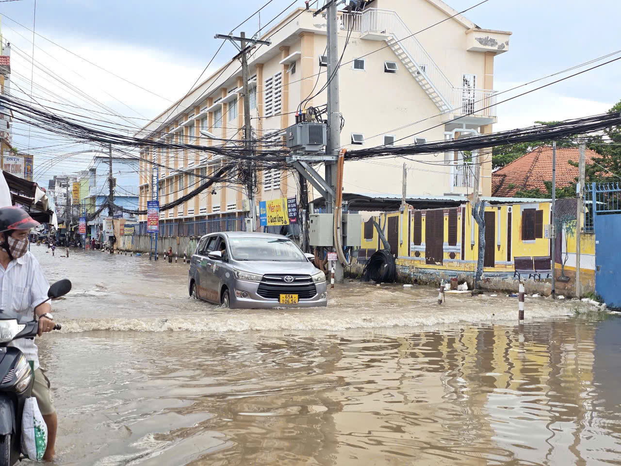 Một đoạn ngắn đi ngang Bến xe Bình Minh bị ngập, ảnh hưởng đến việc lưu thông các phương tiện