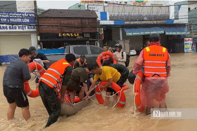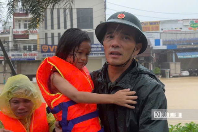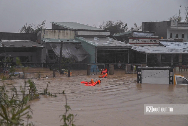 Hơn 30 phút vật lộn trong mưa lớn, con bà Can đã được lực lượng chức năng, người dân hỗ trợ đưa ra ngoài an toàn và di dời đến những nhà kiên cố, có gác cao để ở nhờ.