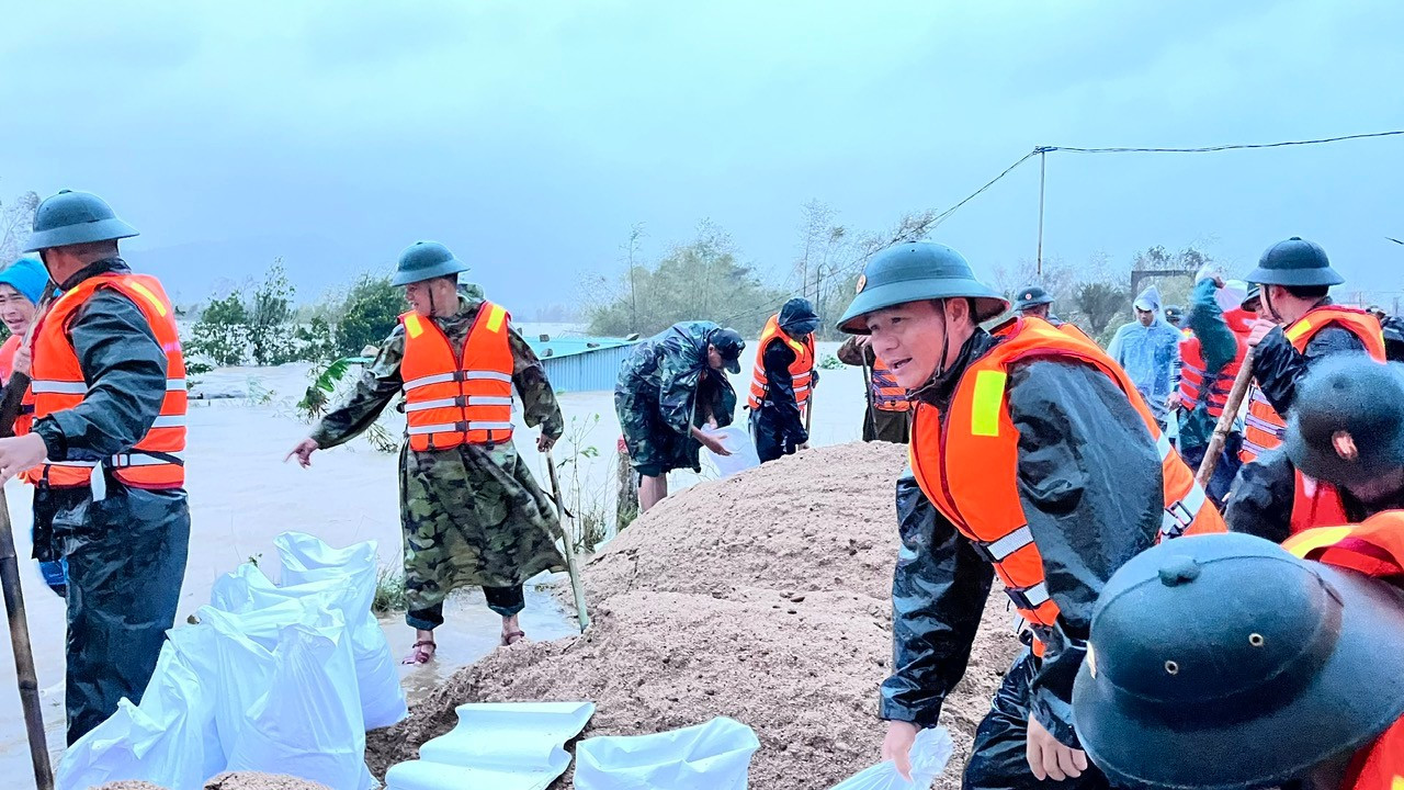 Mưa cùng nước từ thượng nguồn đổ về lớn các lực lượng khẩn trương gia cố các vị trí xung yếu.