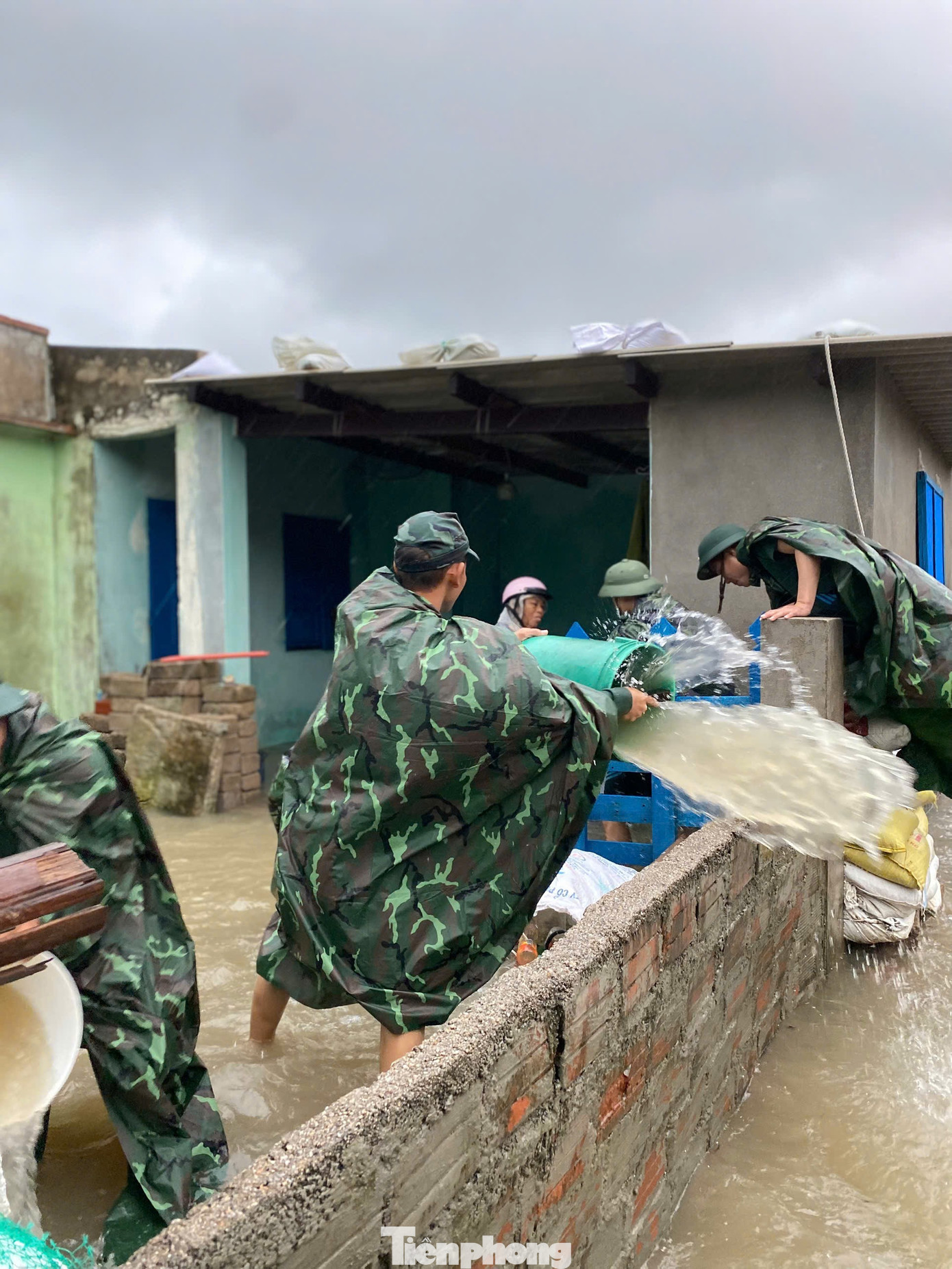 Lực lượng quân đội cũng được huy động để hỗ trợ người dân phòng chống ngập lụt sáng nay.