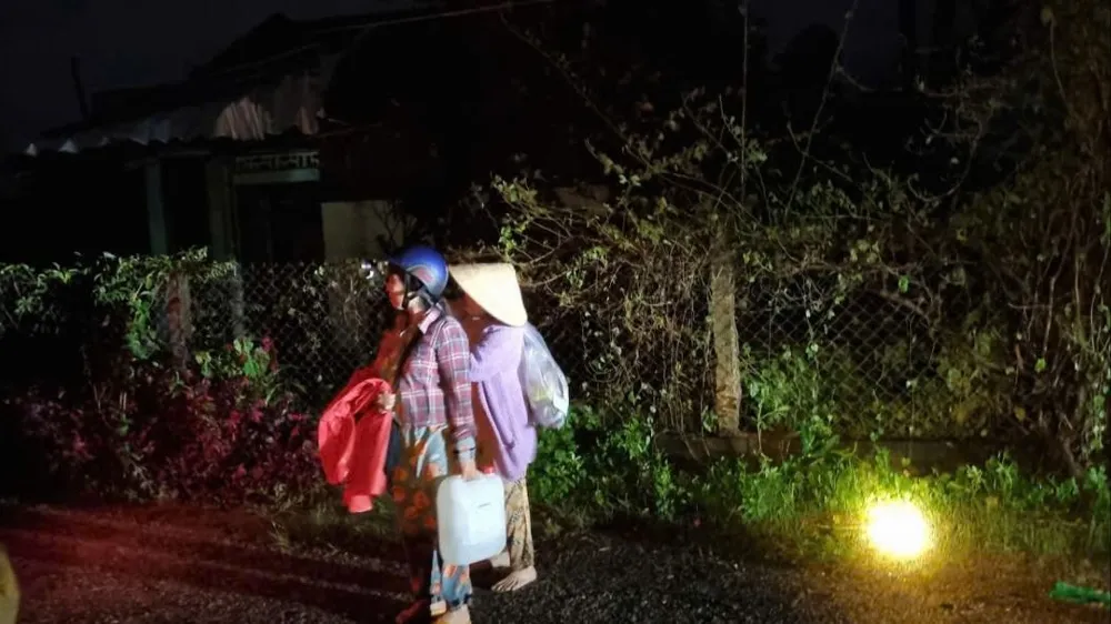 Khoảng 1 giờ sáng 7-11, nước lũ dâng rất nhanh, khiến hàng chục gia đình ở thôn Phước Nhuận, xã Xuân Phước, tỉnh Đắk Lắk phải khẩn cấp sơ tán lên các vùng cao hơn.