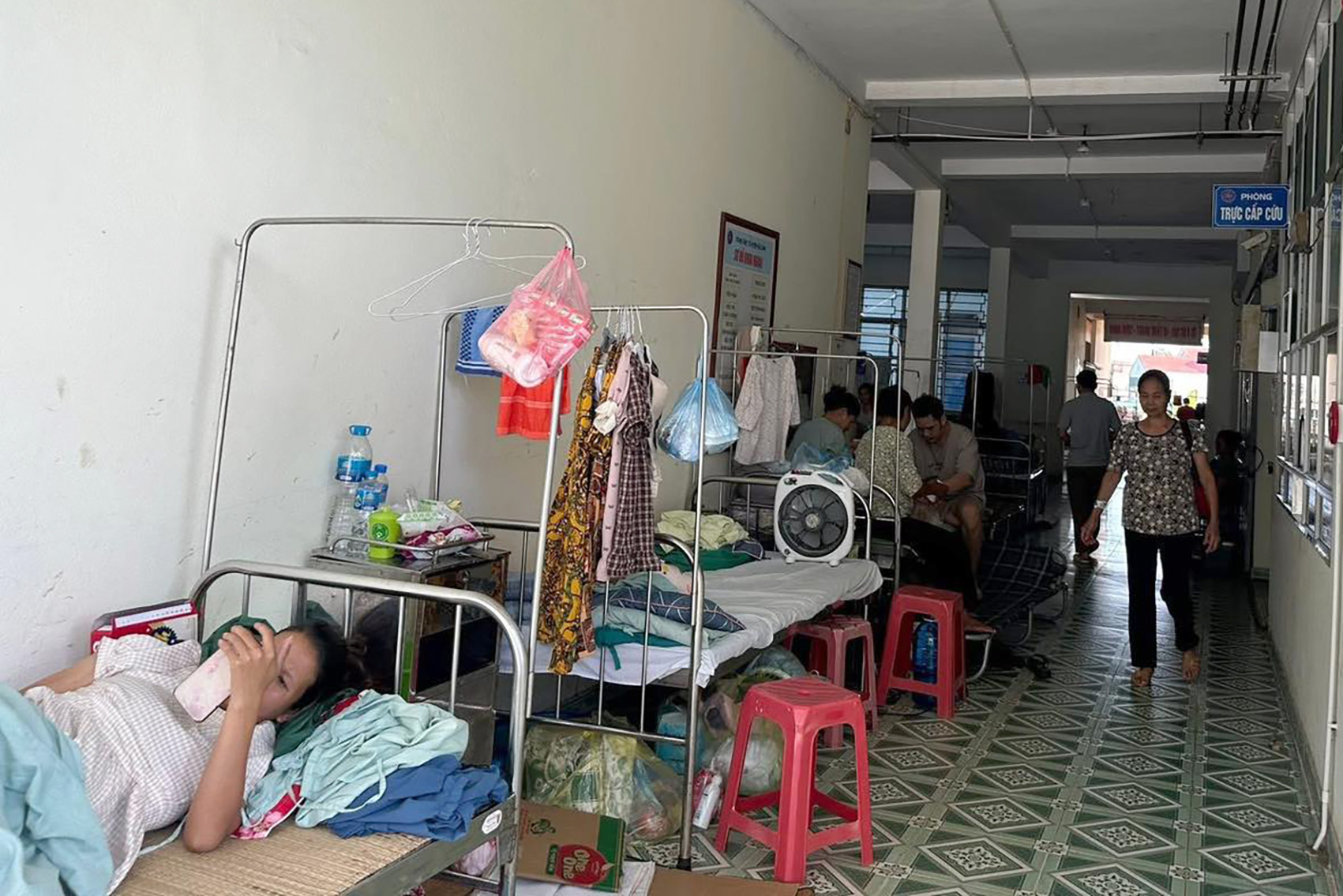 Bệnh nhân được di chuyển lên tầng cao và nằm hành lang vì không đủ chỗ trong phòng. Ảnh: Đ.X