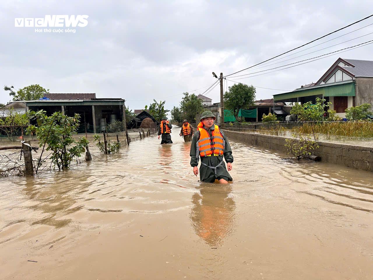 Trưa 1/11, lực lượng chức năng vẫn đang túc trực ở vùng ngập lụt, sẵn sàng sơ tán dân khi cần thiết.