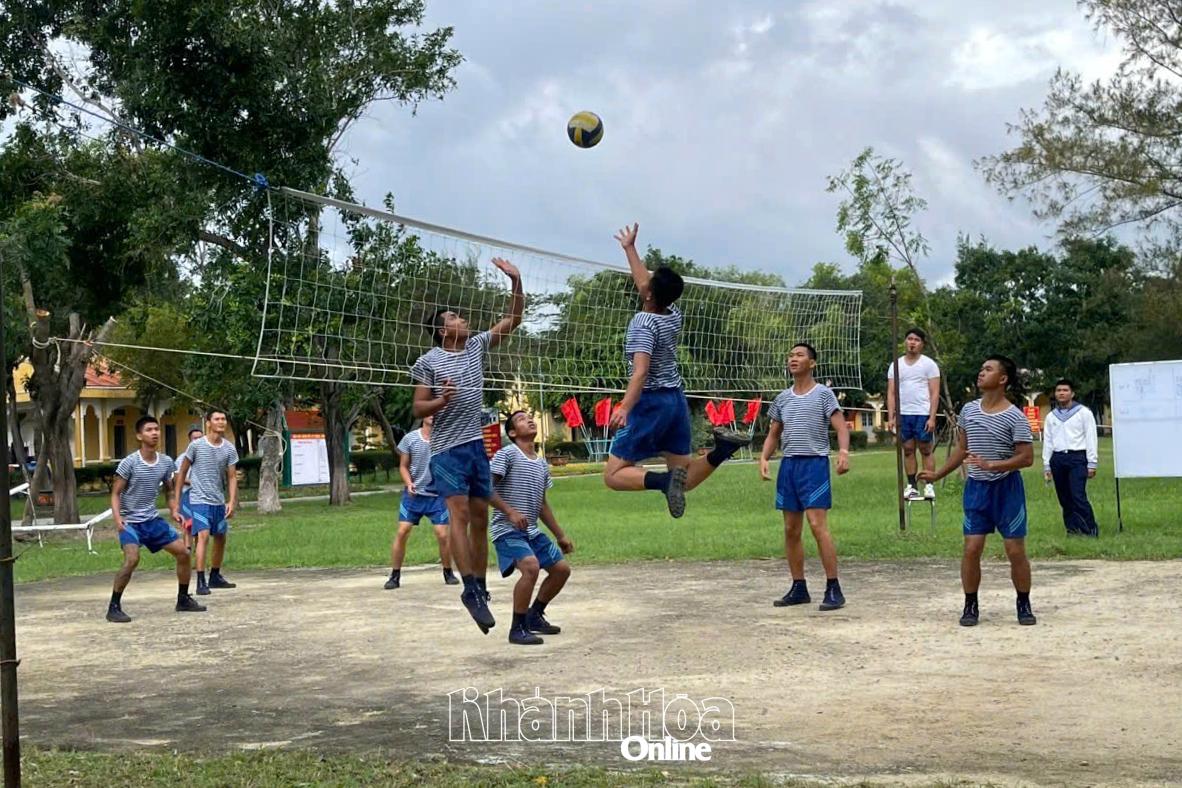 Chiến sĩ lữ đoàn giao lưu bóng chuyền dịp lễ.