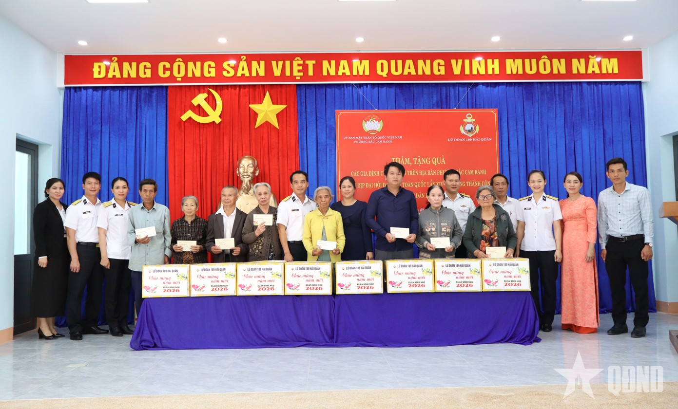 Ngày 2-2, đoàn công tác do Trung tá Hà Văn Tý, Phó chính ủy Lữ đoàn 189 và đồng chí Nguyễn Thị Phương, Phó bí thư Thường trực Đảng ủy phường Bắc Cam Ranh (tỉnh Khánh Hòa) đồng chủ trì, đã đến thăm và trao 20 suất quà, với tổng trị giá 30 triệu đồng, tặng các cựu chiến binh, gia đình chính sách có hoàn cảnh đặc biệt khó khăn tại phường Bắc Cam Ranh.